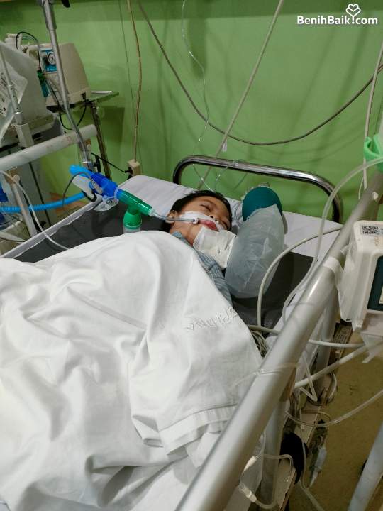Sudah tiga kali Abid dilarikan ke ruang PICU. Sampai hari ini, ia belum bisa melakukan aktivitas apa pun selain berbaring. Mengunyah pun Ia tak mampu, makan dan minumnya hanya dibantu dengan selang NGT yang dimasukkan ke hidungnya.