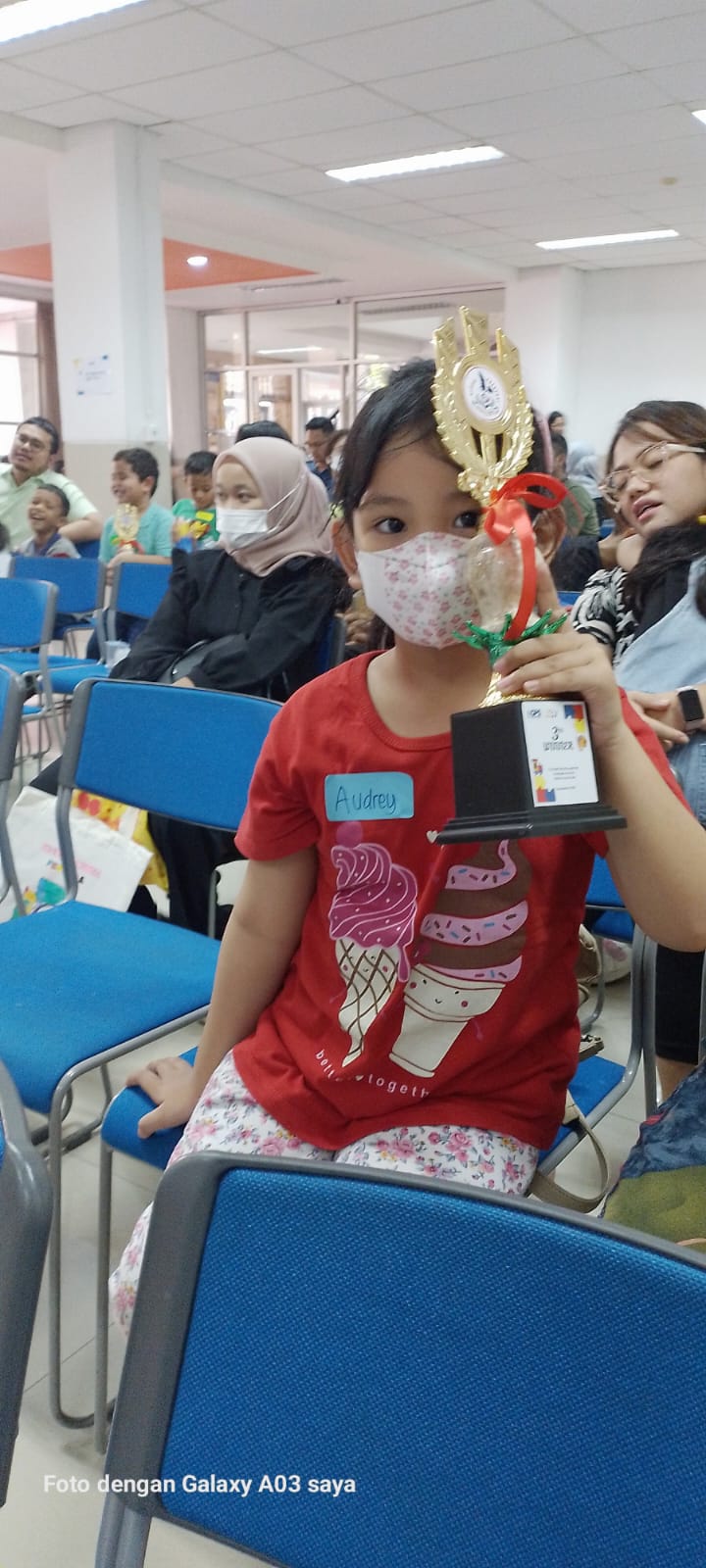“Audrey pernah juara III lomba mewarnai saat TK! Ia sangat mendambakan masa depannya menjadi pelukis. Selain seni, anakku juga pandai dalam mata pelajaran lainnya di sekolah. Bahkan, Ia selalu sedih jika mendapatkan nilai 8, karena Ia langganan mendapat nilai 100 atau A+.”