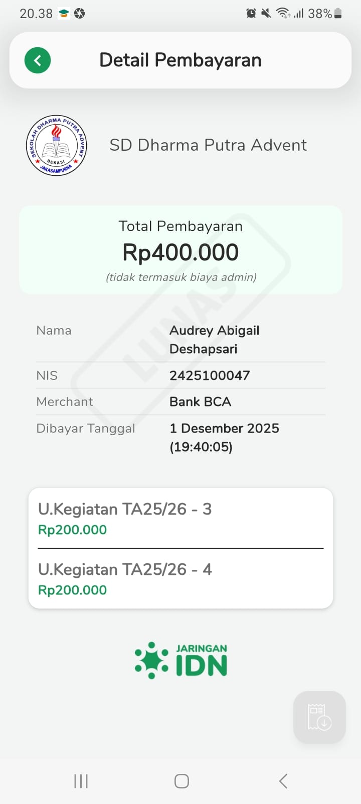 Dana digunakan untuk Tambahan pembayaran SPP bulan juli 20252025-12-01 09:40:35