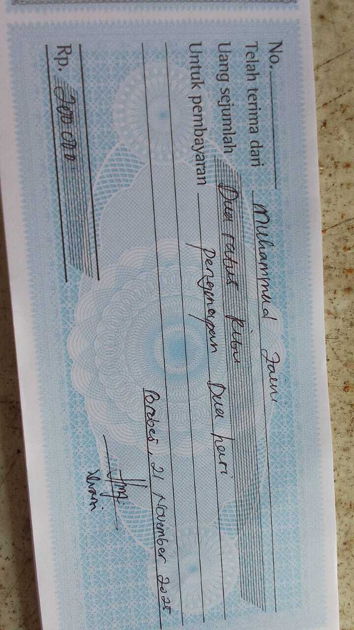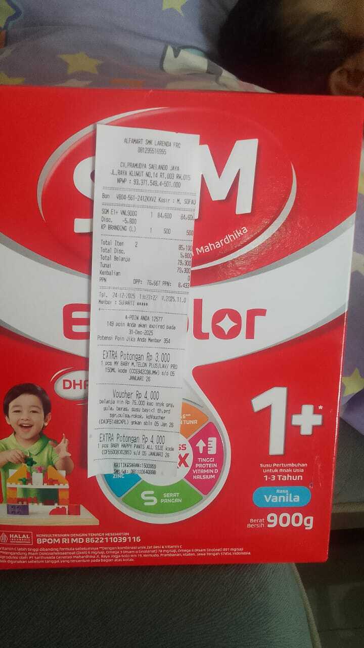 Dana digunakan untuk 1. Susu Sgm eksplor Rp85.000 × 4 = Rp340.000 2. Pempes sweety Rp55000 × 6 =Rp 330.000 3. Minyak Telon Rp33000 × 3 = Rp99.000 4. Tisu Basah Rp17.500 × 4 = Rp70.000 5. Tisu Kering Rp7200 × 10 = Rp72.000 6. Nestle Rp18.200 × 10 = Rp182.000 7. Salep inerson Rp 92.000 × 2 = Rp184.000 8. Hansaplast rool Rp16.000 × 3 = Rp48.000 9. Ngt selang makan Rp25.000 × 4 = Rp100.000 10. Syringe Rp17.0002026-01-05 09:24:37