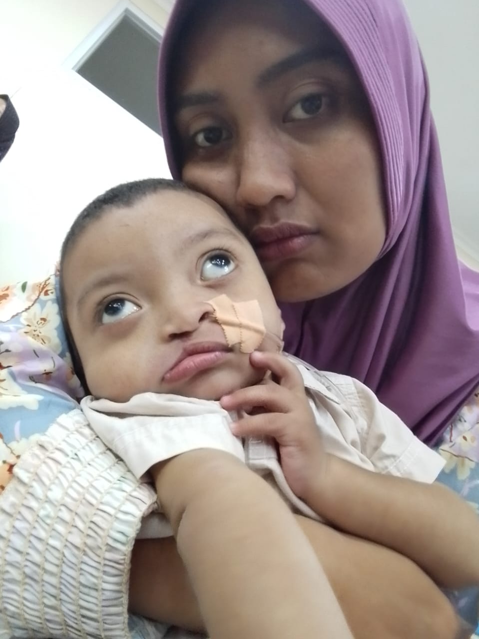 Anakku, Muhammad Zaini (18 bln), langsung masuk ICU begitu lahir. Berat badannya sangat rendah dan bibirnya memang sudah sumbing. Perasaanku kacau sekali saat itu! Bayangkan saja, dua minggu anakku harus di ruangan untuk pasien yang mengalami kritis.