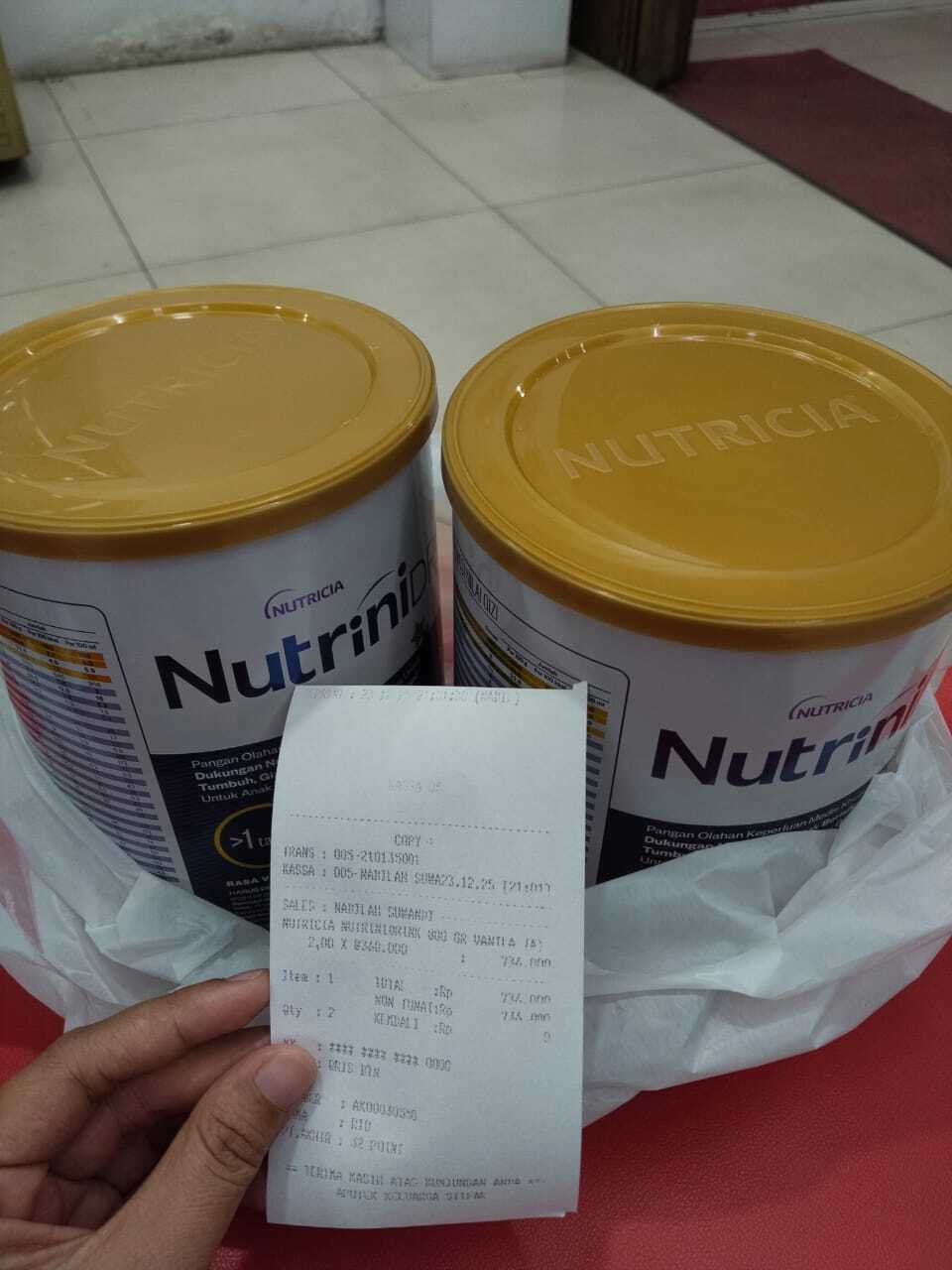Susu Nutrinidrink ukuran kecil (1 kaleng): Rp200.000