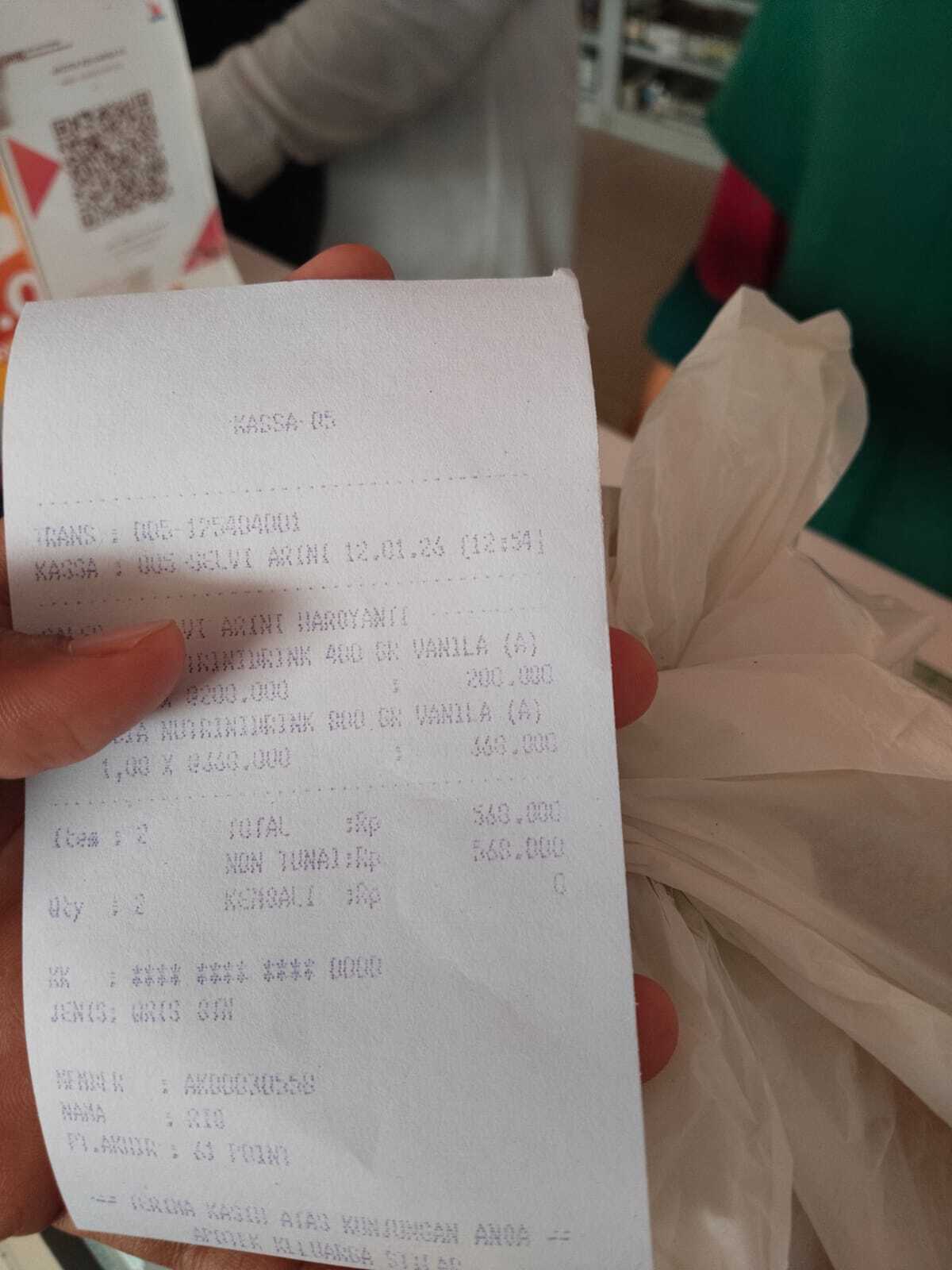 Dana digunakan untuk 1. Susu Nutridrink 800gr Rp. 368.000 2. Susu Nutridrink 400gr Rp 200.0002026-01-09 09:56:13