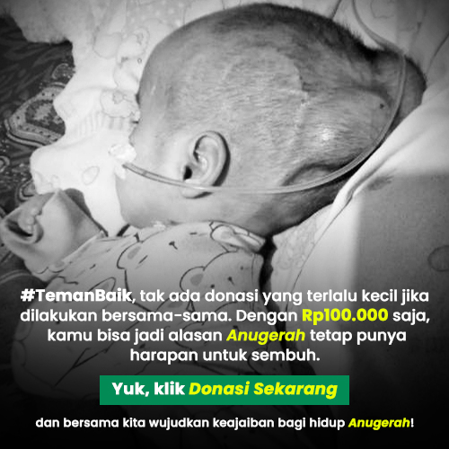 #TemanBaik, tak ada donasi yang terlalu kecil jika dilakukan bersama-sama. Dengan Rp100.000 saja, kita bisa jadi alasan Anugerah tetap punya harapan untuk sembuh. Yuk, klik Donasi Sekarang dan bersama kita wujudkan keajaiban bagi hidup Anugerah!