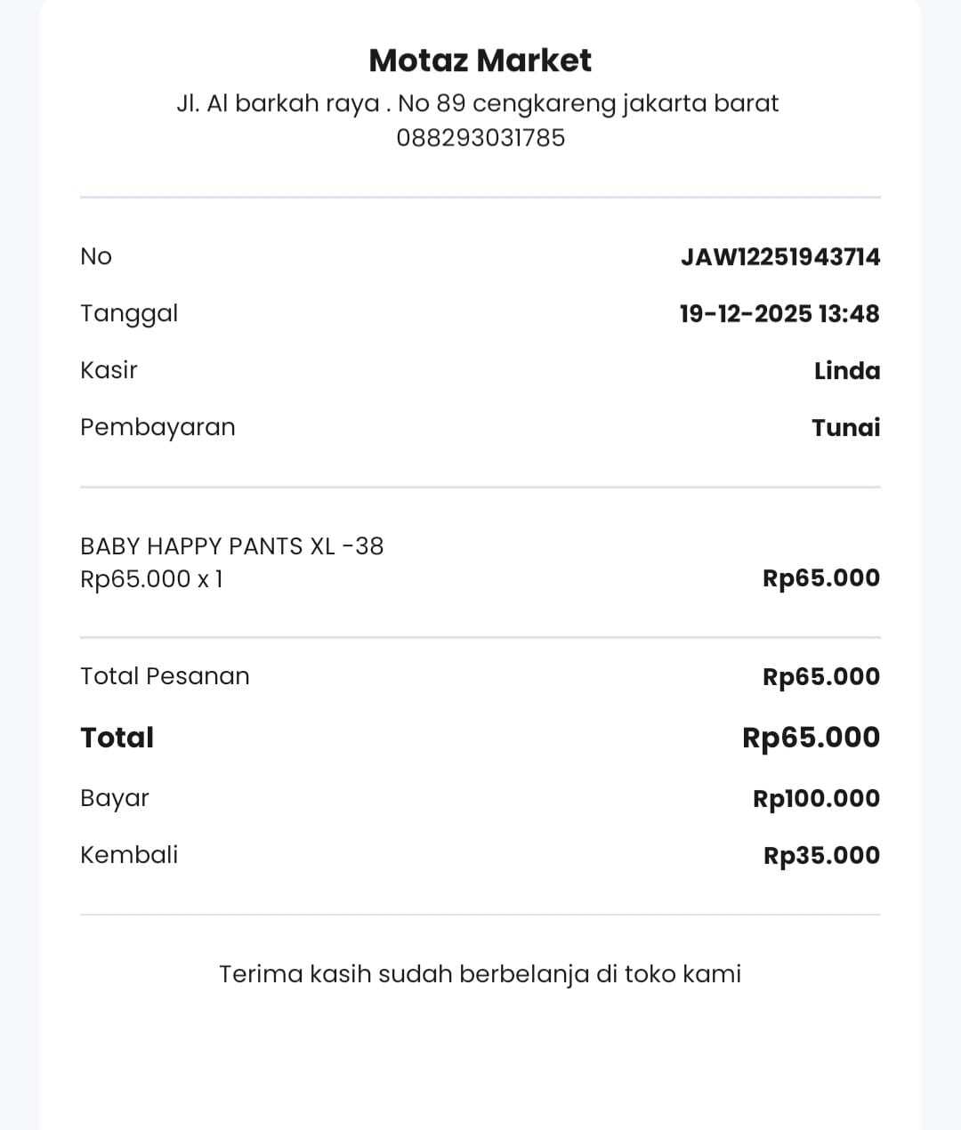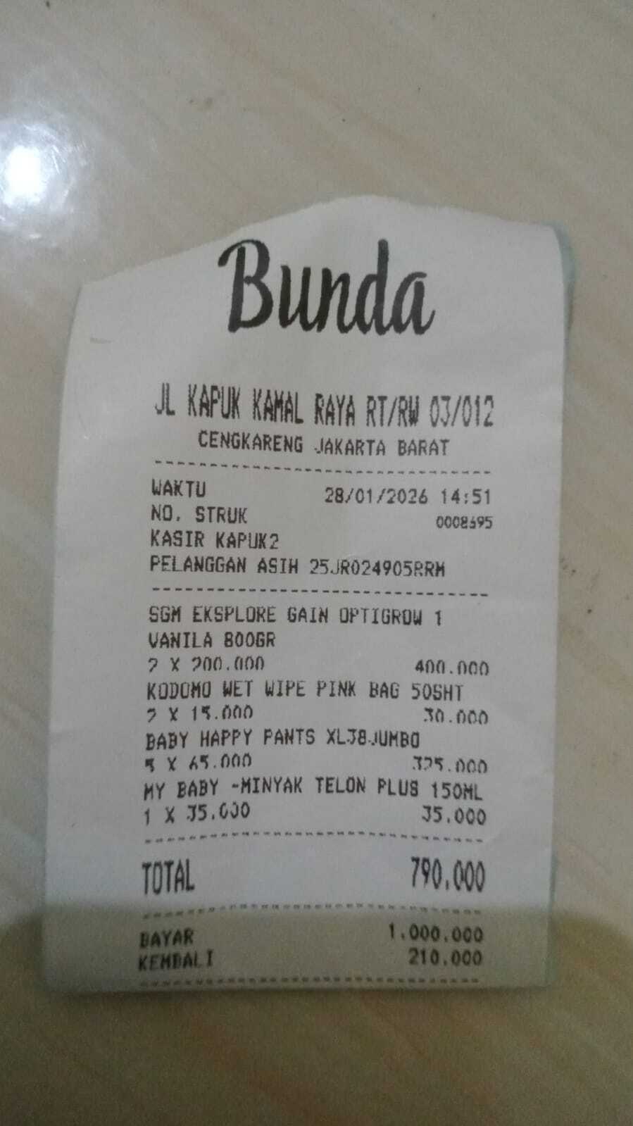 Dana digunakan untuk 1. Pempers anak Rp65.000 2. Transportasi online ke rs PP Rp65.0002025-12-18 10:11:10
