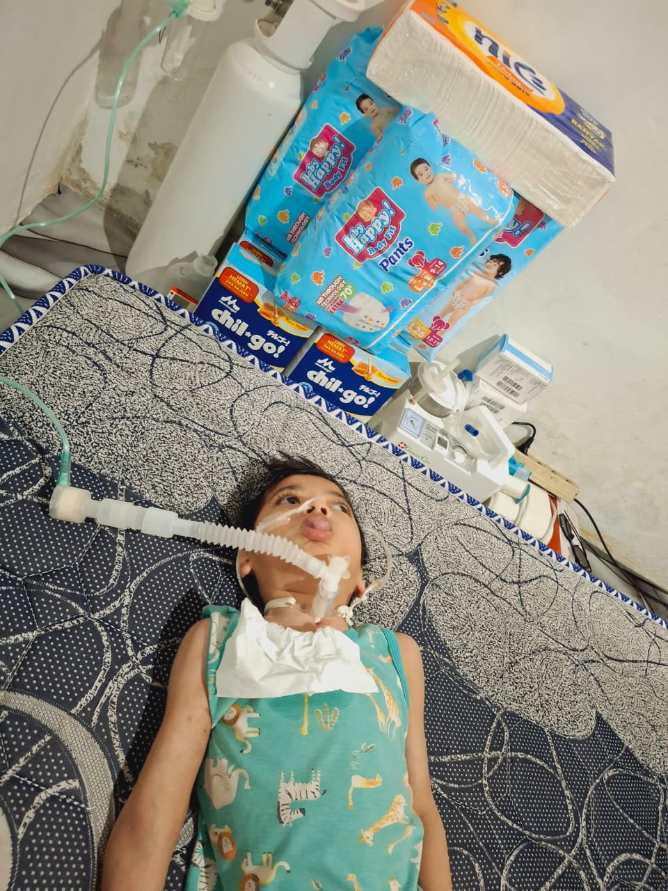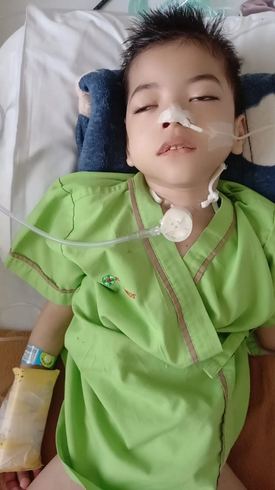 Bayangkan saja, anakku harus menerima 4 kantong darah sekaligus! Ia juga mengalami infeksi paru-paru (pneumonia) hingga sesak napas hebat. Selama 27 hari dirawat di PICU rumah sakit dengan alat medis menempel di tubuhnya, akhirnya dokter memutuskan agar anakku harus operasi trakeostomi (membuat lubang di lehernya sebagai jalur napasnya).