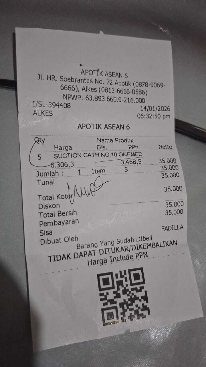Dana digunakan untuk 1. Susu pediasure Rp.460.000 2. Susu chilgo Rp99.000 x 10dus = Rp990.000 3. Pampers beby heppy Rp48.000 x 5 ball =Rp240.000 4. Tisu neck isi 2000 lembar Rp.45.000 x 2 = Rp90.0000 5. Isi ulang oksigen Rp35.0002026-01-15 10:24:43