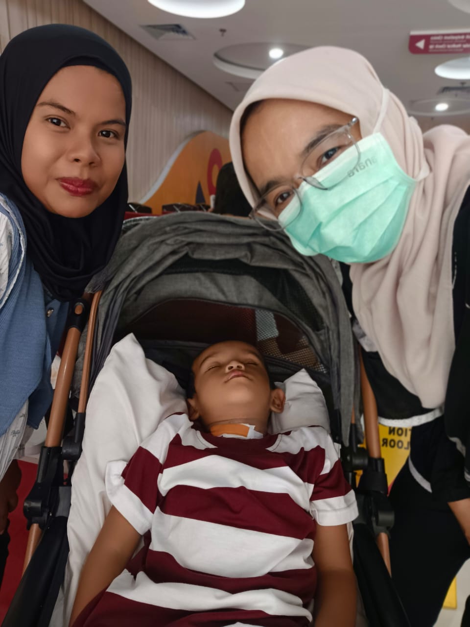 Sejak awal, Arkan memang menggunakan alat bantu pernapasan berupa trakeostomi. Saya sungguh bersyukur atas bantuan dari orang-orang baik dan para donatur yang telah membantu, sehingga Arkan masih bisa terus menjalani pengobatannya.