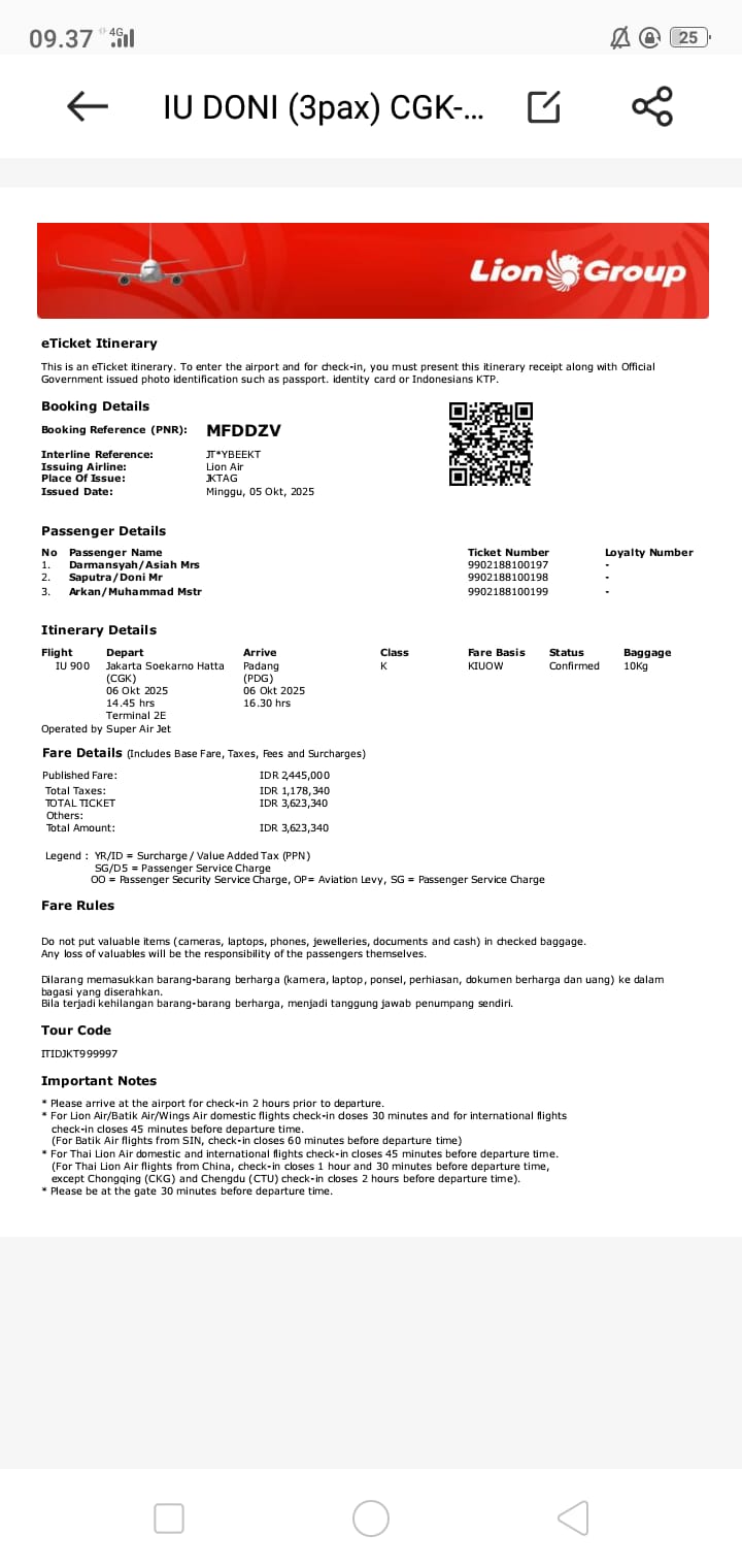 Dana digunakan untuk 1. Susu chilscol Rp135.000 × 5 dus = Rp675.000 2. Pampers m Poko.Rp85.000 × 4ball =Rp340.000 3. Tranpotrasi online dari rumah ke RS Rp50.000 x 3 kali =Rp150.000 4. Transportasi travel balik dari Jakarta ke Padang Rp800.000x 3 orang =Rp2.400.0002025-09-26 10:12:27