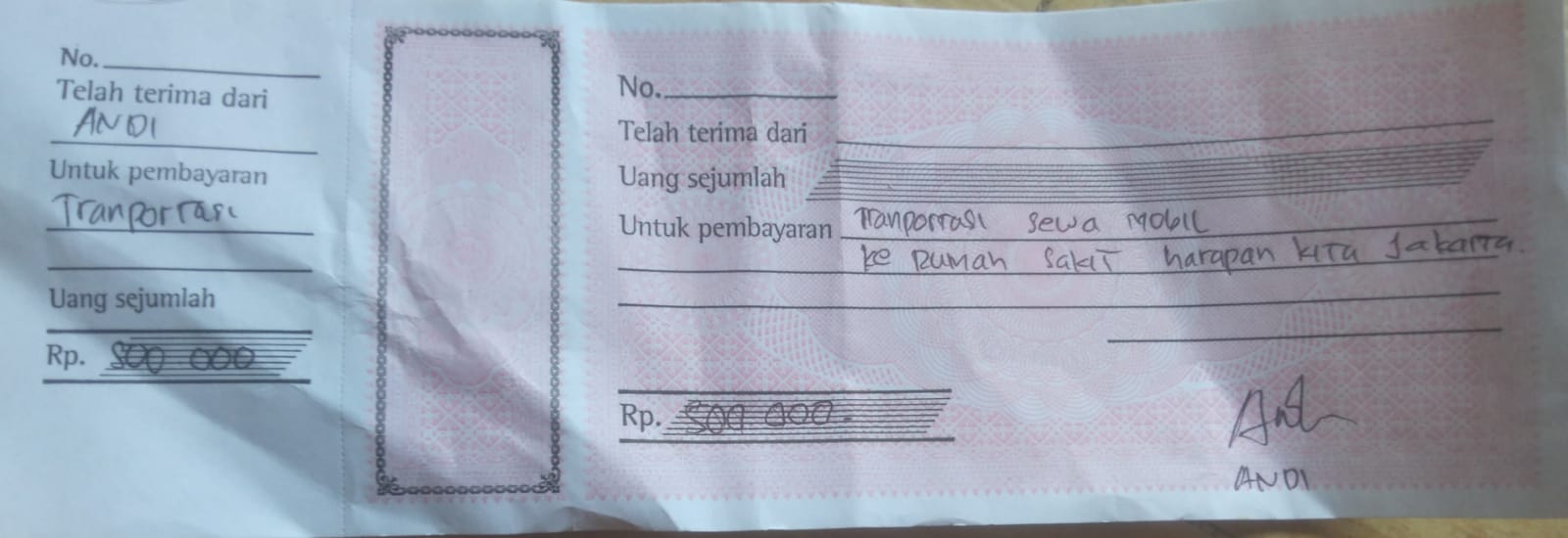 Dana digunakan untuk 1. Susu SGM Rp50.000 x 3 dus = Rp150.000 2. Pampers baby happy Rp50.000 × 4ball = Rp200.000 3. Tranpostasi grabcar ke RS pp Rp100.000 x 5 kali = Rp500.0002025-08-04 10:27:10