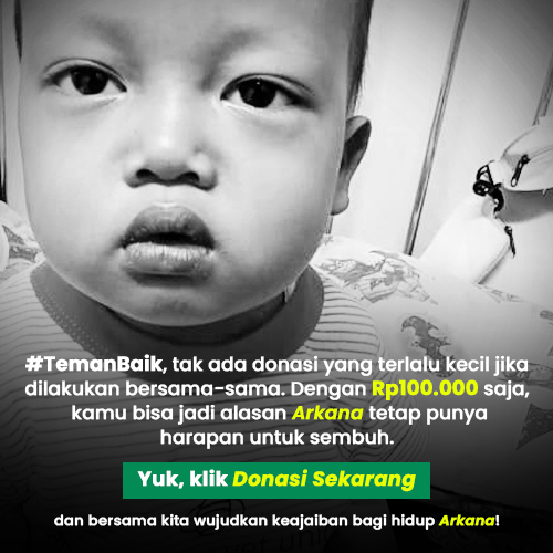 #TemanBaik, tak ada donasi yang terlalu kecil jika dilakukan bersama-sama. Dengan Rp100.000 saja, kita bisa jadi alasan Arkana tetap punya harapan untuk sembuh. Yuk, klik Donasi Sekarang dan bersama kita wujudkan keajaiban bagi hidup Arkana!