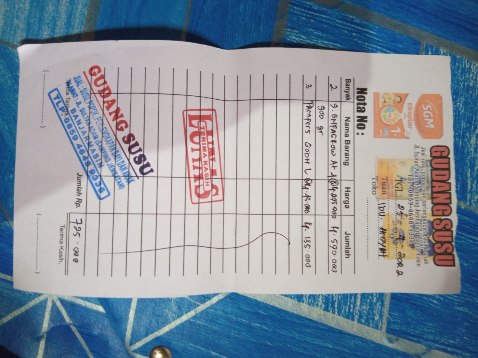 Rp.300.000 untuk membeli obat jantung ,vitamin penambah nafsu makan, obat batuk, obat uap dan selang uap., Rp.470.000 untuk membeli susu, RP.330.000 untuk membeli keperluan seperti pampers dan tisu2022-04-07 16:45:03