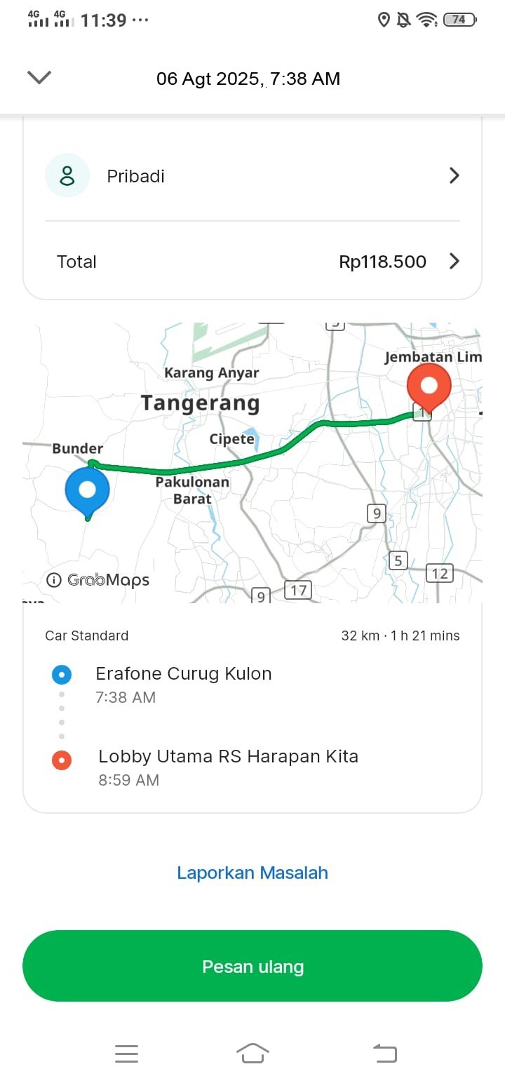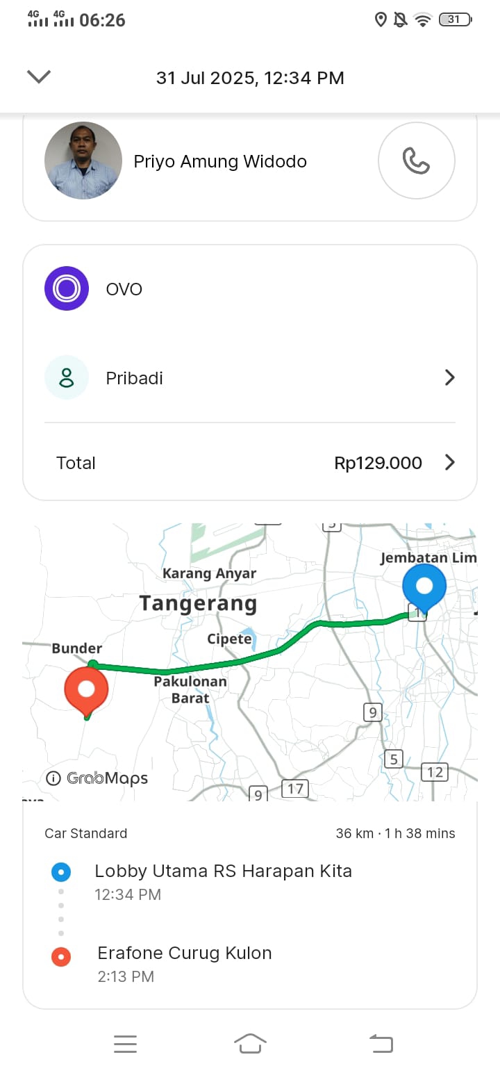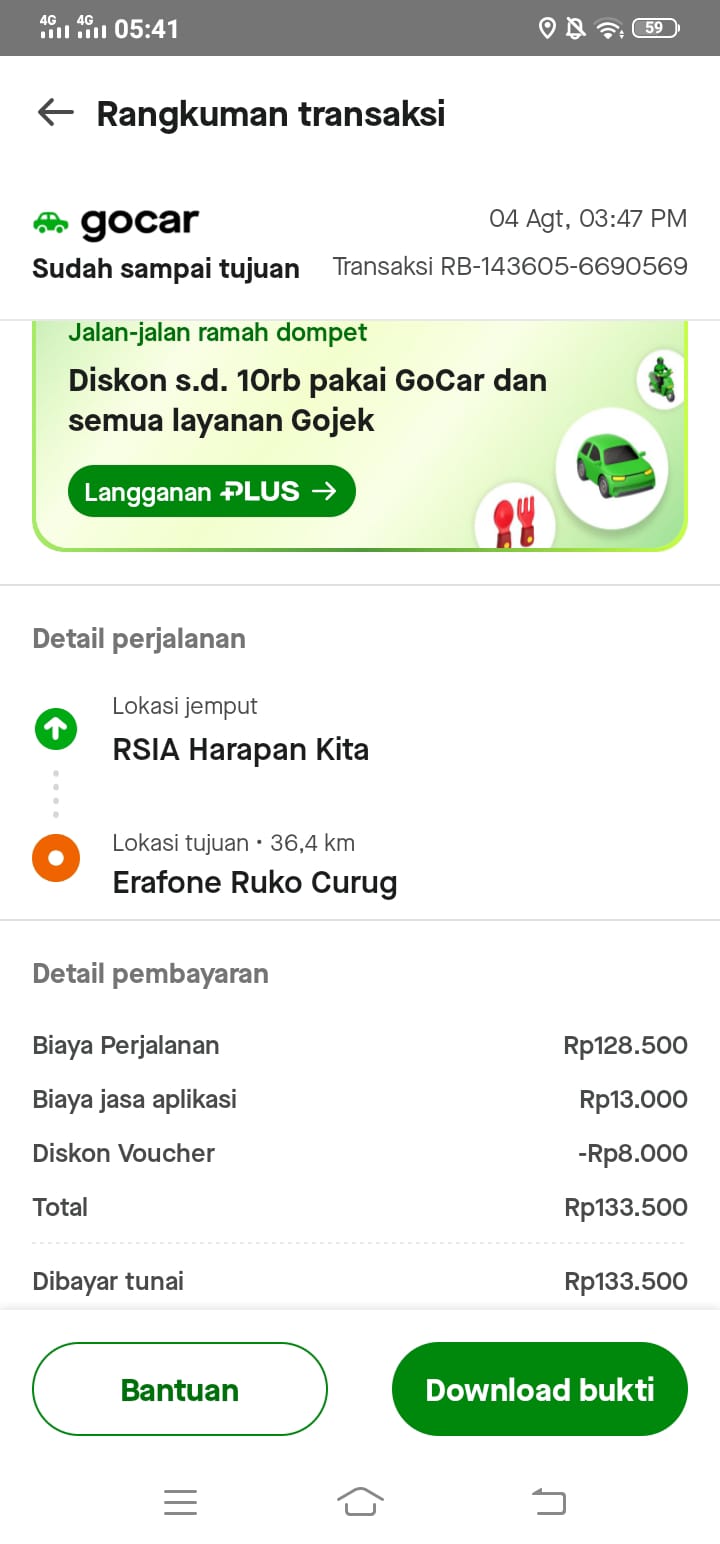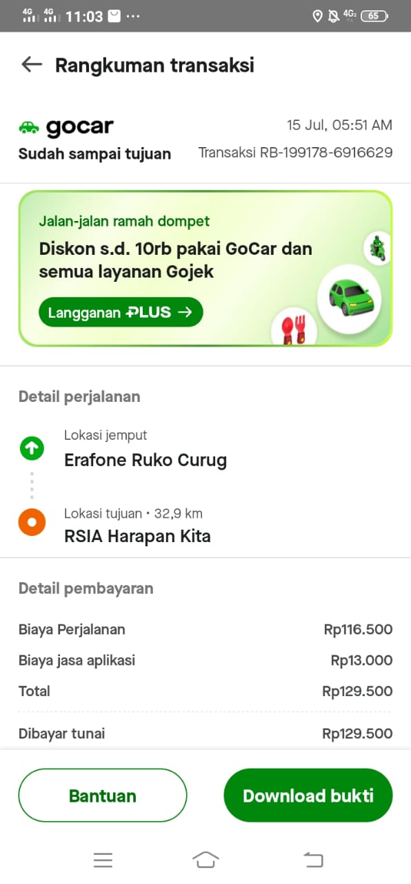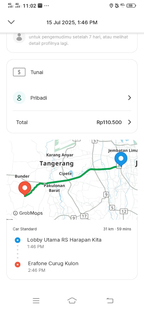 • Ongkos GrabCar karena hujan deras sebesar Rp390.000