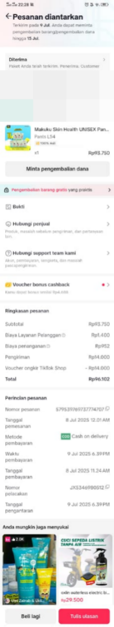 Dana digunakan untuk 1. Reimburse Pampers 3 ball Rp246.000 2. Reimburse Prolacta dha 30 tablet Rp175.000 3. Reimburse Gendongan bayi Rp517.000 . 4. Reimburse Stroller bayi Rp308,000 5. Reimburse Transportasi online Rp368.5002025-07-25 09:21:44