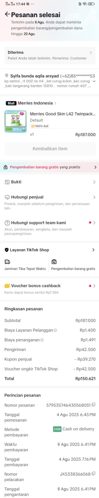 Dana digunakan untuk 1. Reimburse Pampers merries L Rp150,000. 2. Reimburse Susu SGM optigrow vanila 10 dus Rp910,000. 3. Reimburse Susu SGM 1 plus vanila Rp157,000 4. Reimburse Valproic acid Syrup 5 botol Rp350,000. 5. Reimburse velutine Rp103,500 6. Reimburse ranivel Rp85,500 . 7. Reimburse Transportasi ngkos grab car , gocar Tangerang - RS harkit jakarta Rp650.0002025-08-11 12:01:51