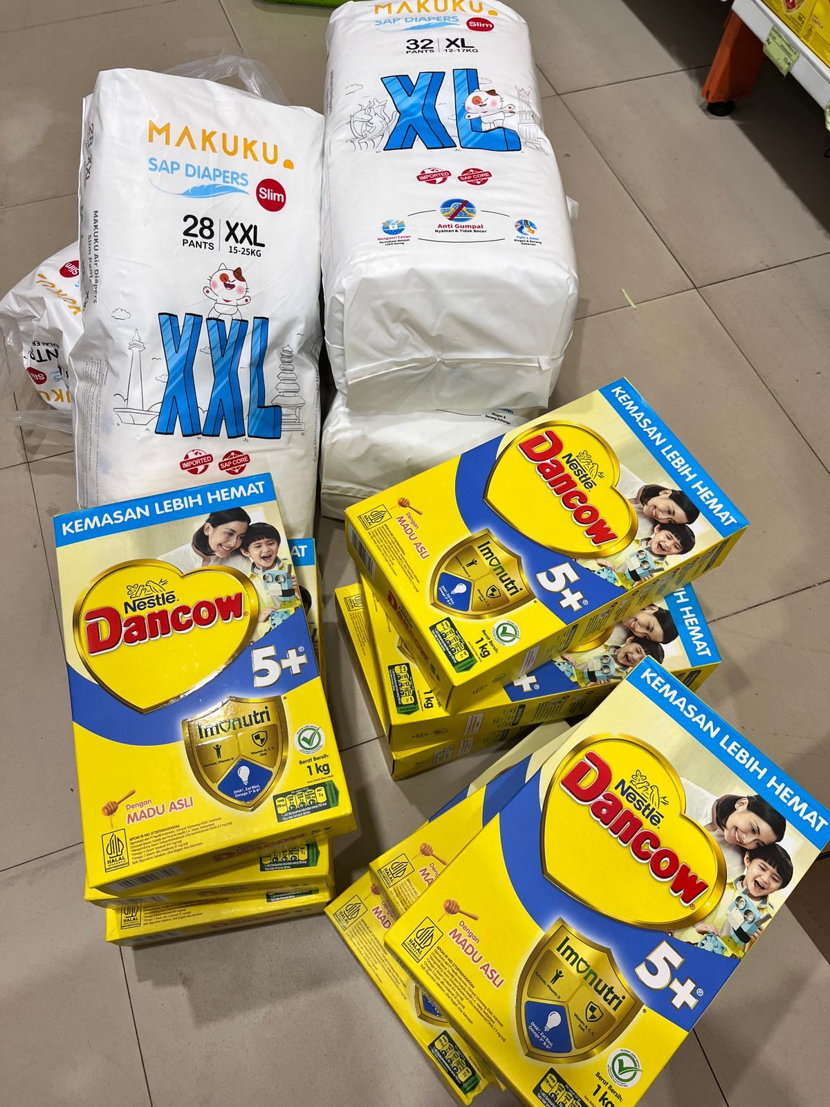 Beli pampes mamy poko xxl 3 ball dan susu dancow 5+ 1kg 9 kotak Untuk 1 bulan2025-11-25 09:15:38
