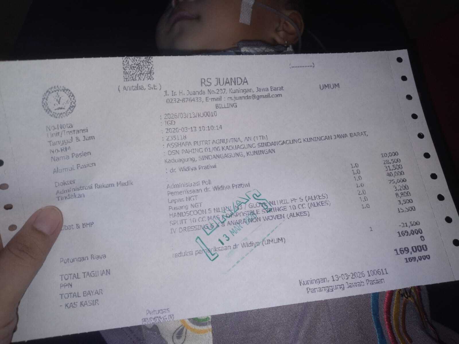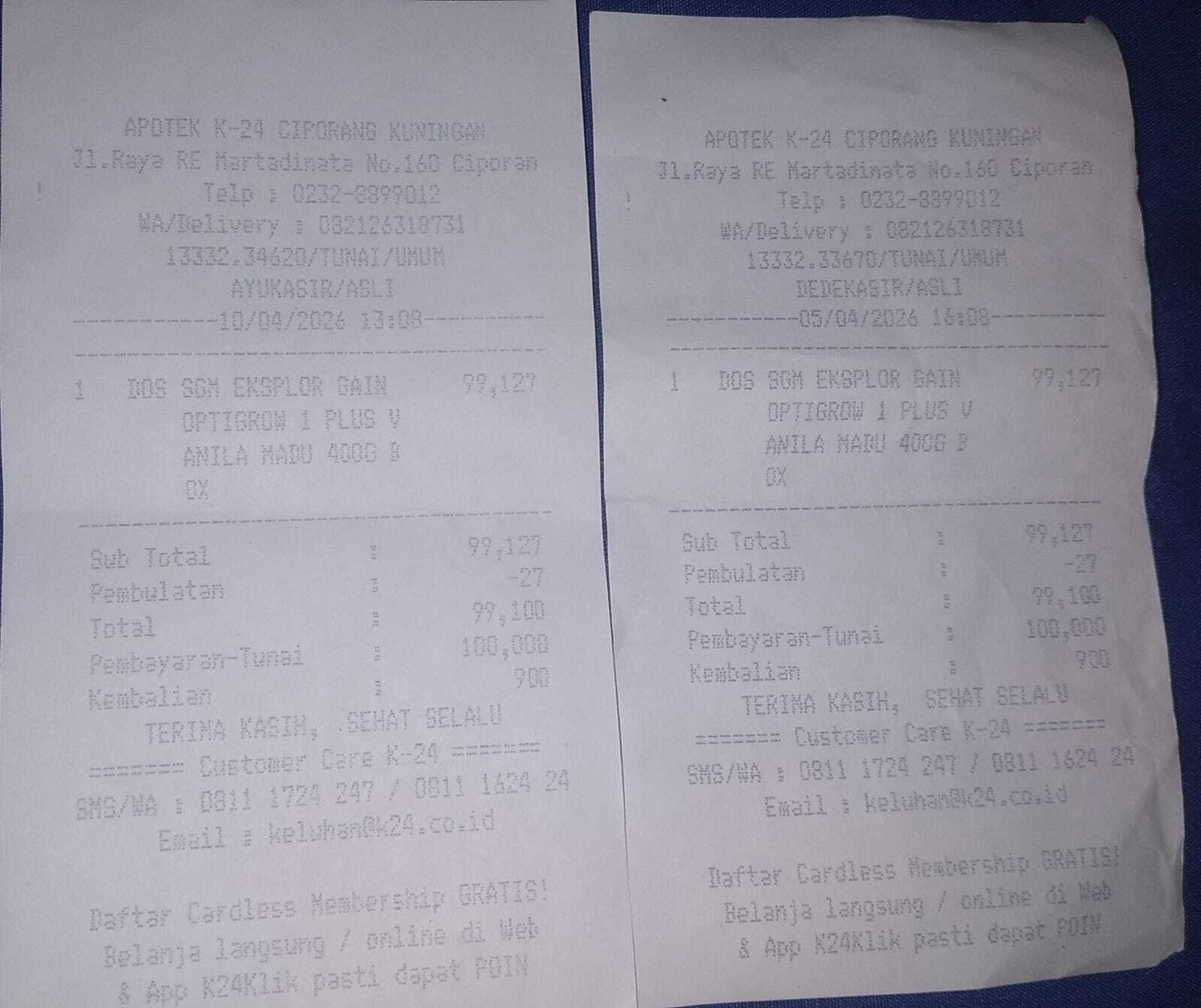 Dana digunakan untuk 1. Reimburse pemasangan selang Ngt Rp169.000 2. Susu sgm Eksplor Gain Optigrow Rp100.0002026-03-30 11:57:35