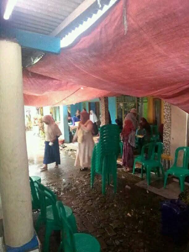 “Setiap kali hujan turun, hati para jamaah yang beribadah ikut diliputi rasa cemas. Bukan hanya karena derasnya hujan, tapi juga karena genteng mushola yang retak dan bisa runtuh kapan saja. Belum lagi air yang masuk melalui celah atap dan pintu mushola yang sejajar dengan jalanan, membuat lantai mushola akan tergenang!”