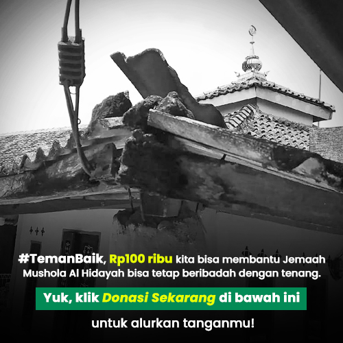 #TemanBaik, Rp100 ribu kita bisa membantu Jemaah Mushola Al Hidayah bisa tetap beribadah dengan tenang. Yuk, klik Donasi Sekarang di bawah ini untuk alurkan tanganmu!
