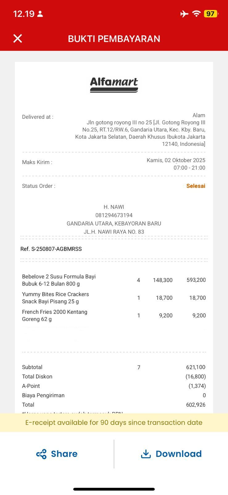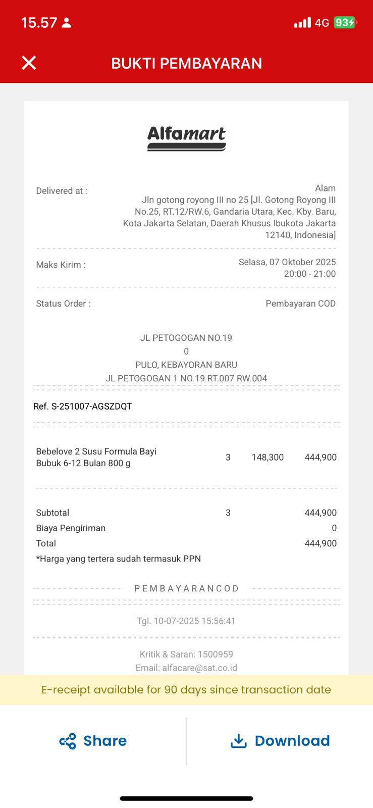 Dana digunakan untuk susu bebelove Rp180.000 x 3 = Rp540.0002025-10-17 15:25:29