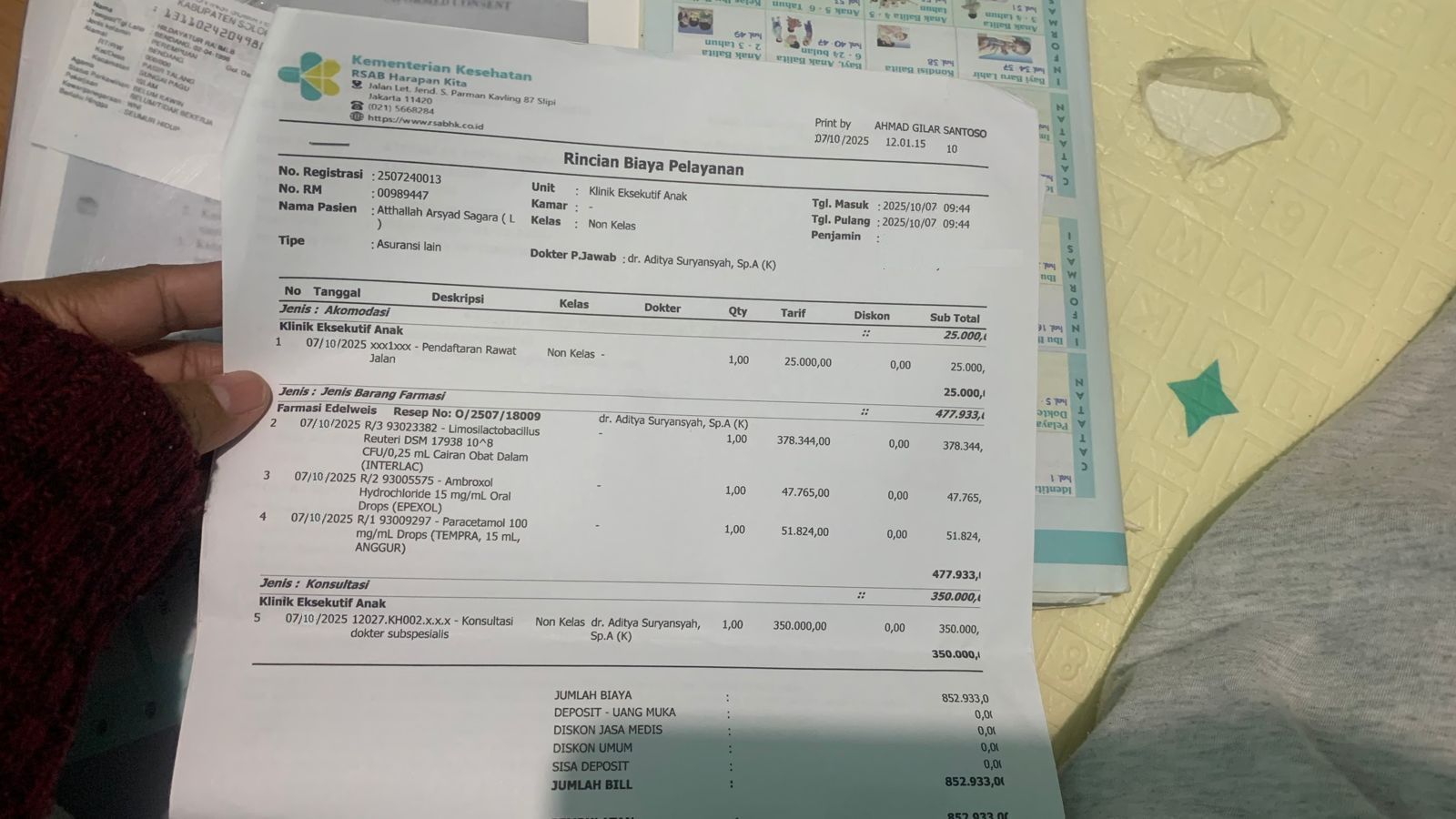 Hari ini Atthallah berobat ke dokter anak karena mengalami batuk pilek, sesak, demam, dan diare.