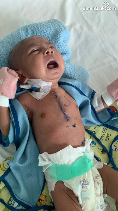 Kondisinya sempat drop, hingga harus dirujuk ke rumah sakit yang lebih besar. Dokter akhirnya memutuskan memasang balon jantung dan melanjutkan operasi besar. Namun, anakku sempat pendarahan, sehingga dokter sempat menunda untuk menutup tulang dadanya.