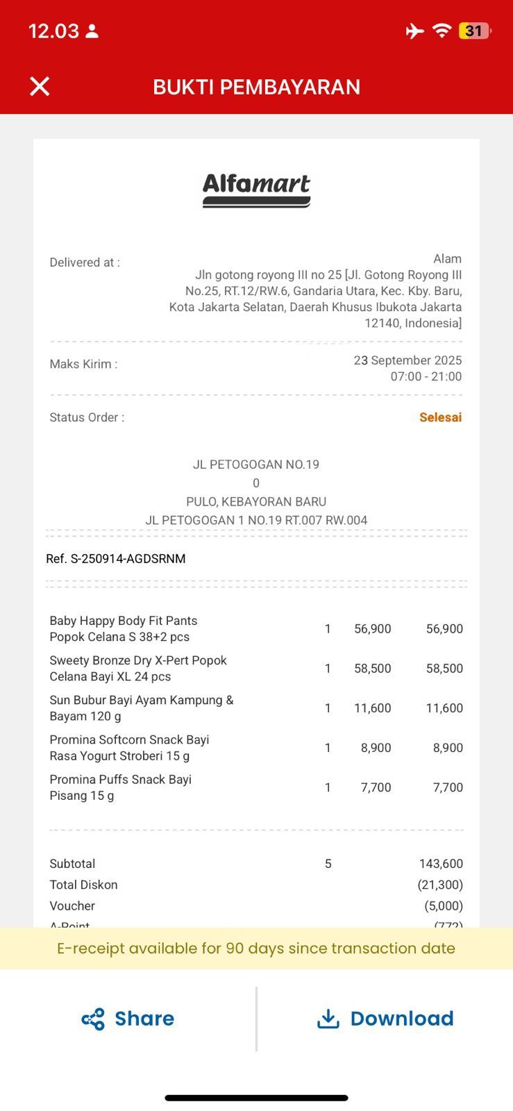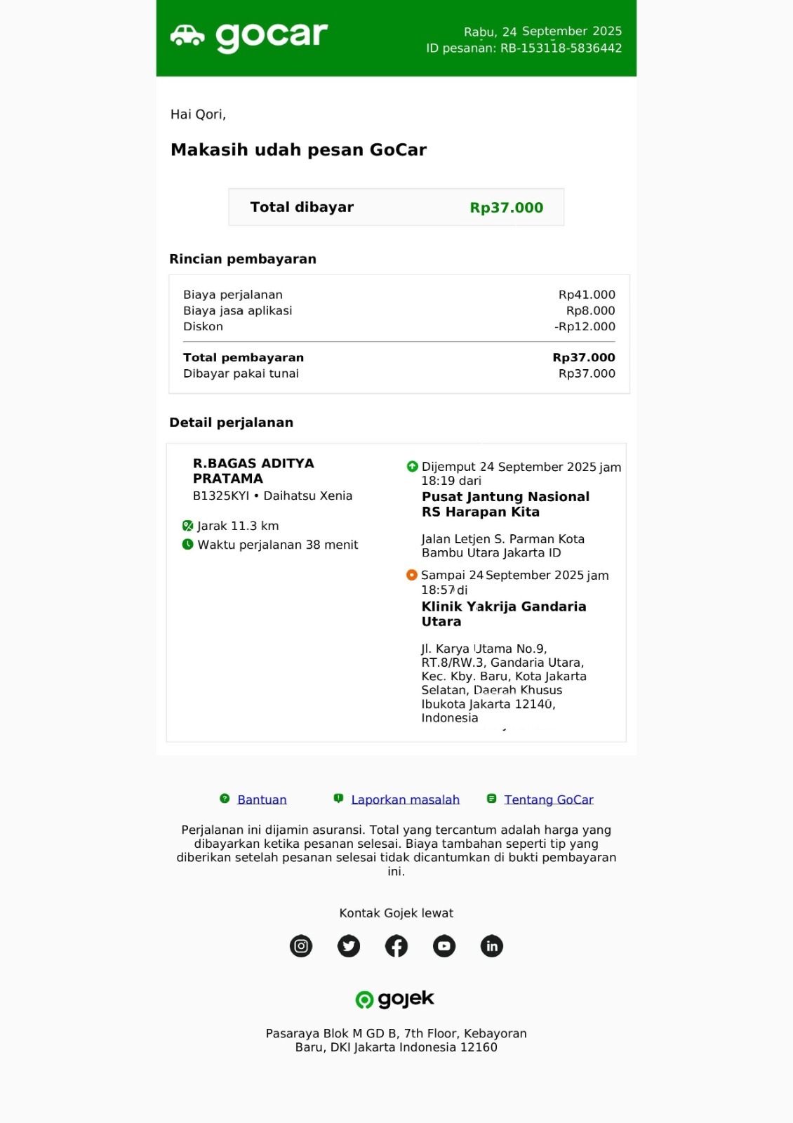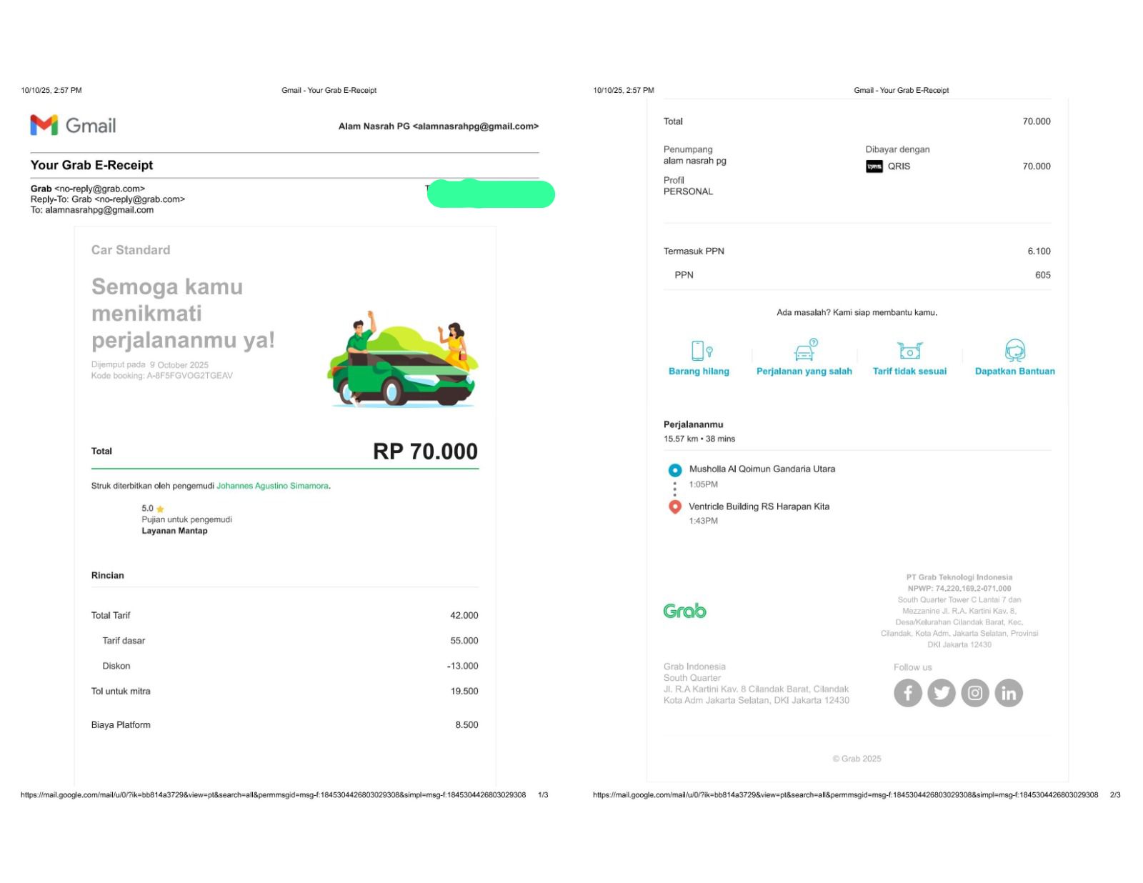 Dana digunakan untuk 1. Transportasi ke RS PP Rp100.000 2. Pampers Rp55.0002025-09-24 10:11:13