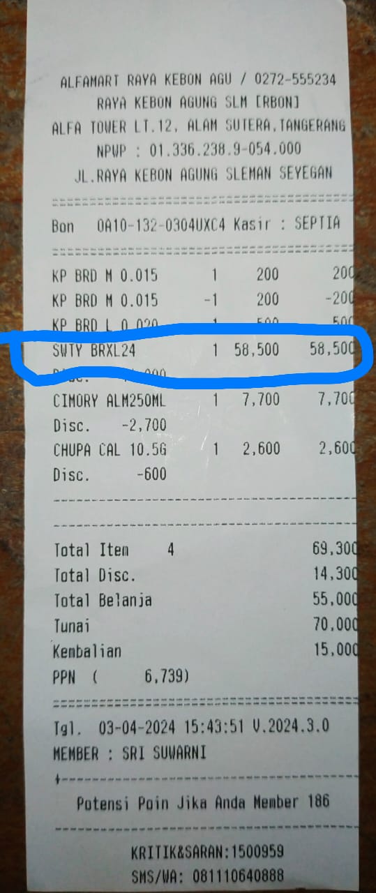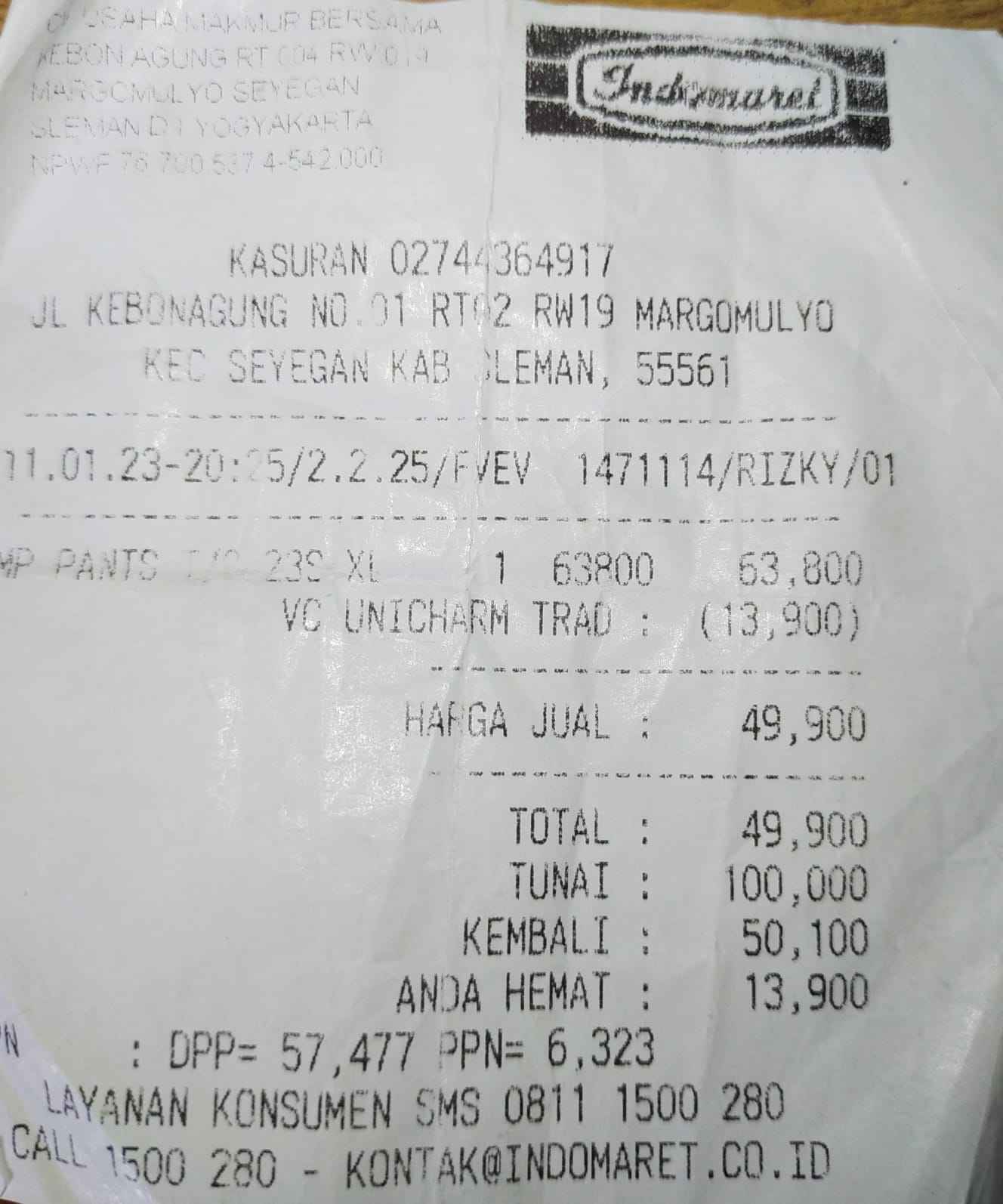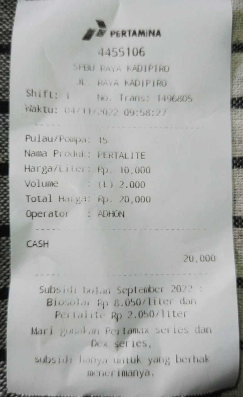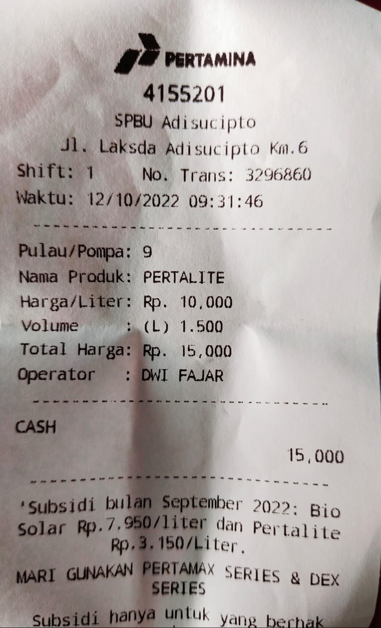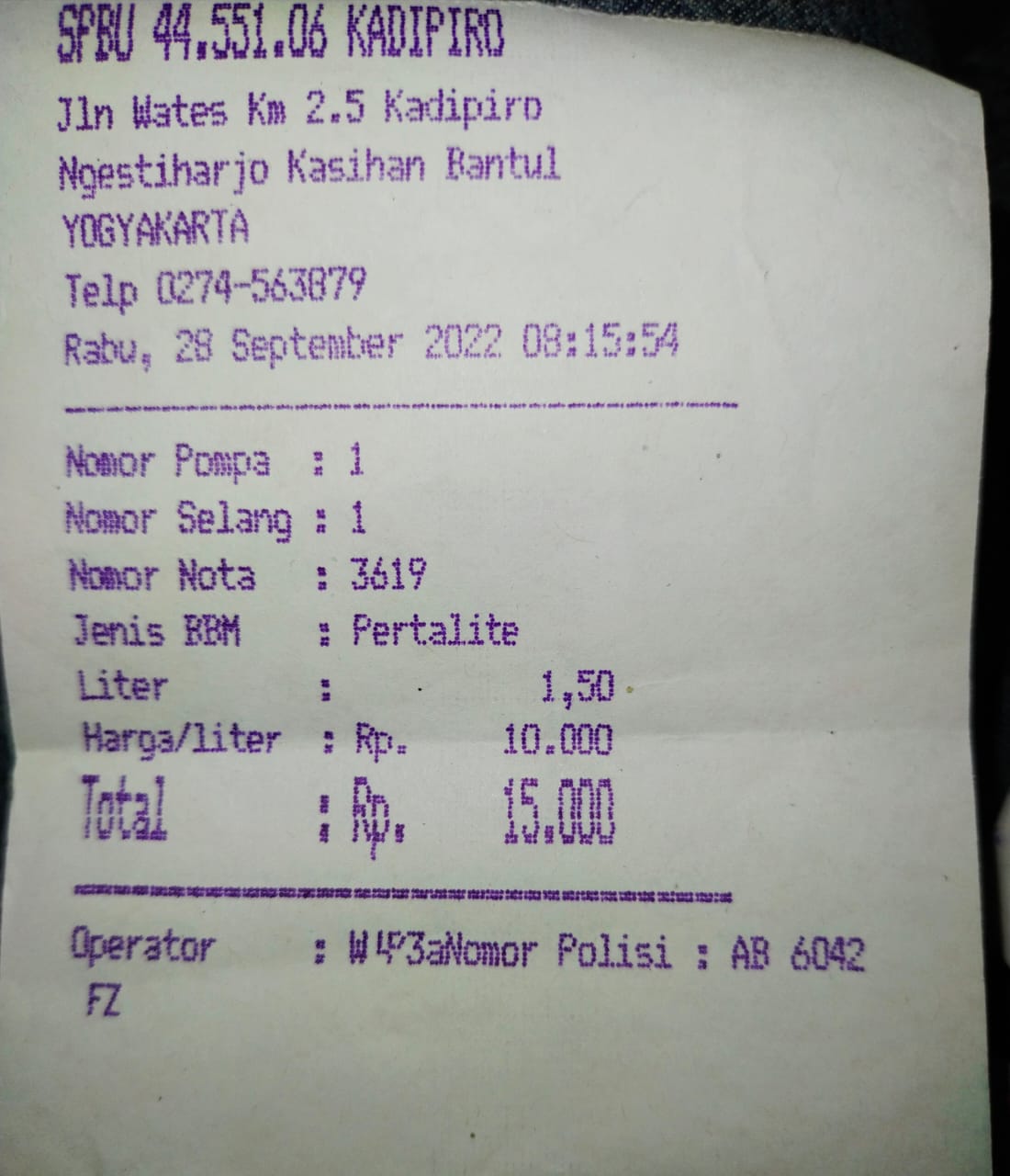Aku juga ingin mengabarkan bahwa bantuan dari TemanBaik sudah digunakan anakku untuk membeli susu, popok serta biaya bensin dua kali.