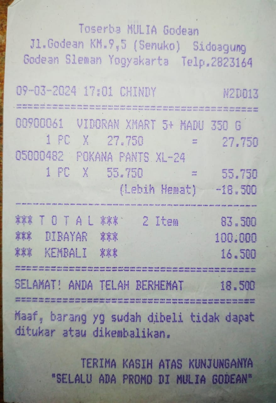 2. Pempers mamypoko ukuran XL (2 pcs) = Rp100.000