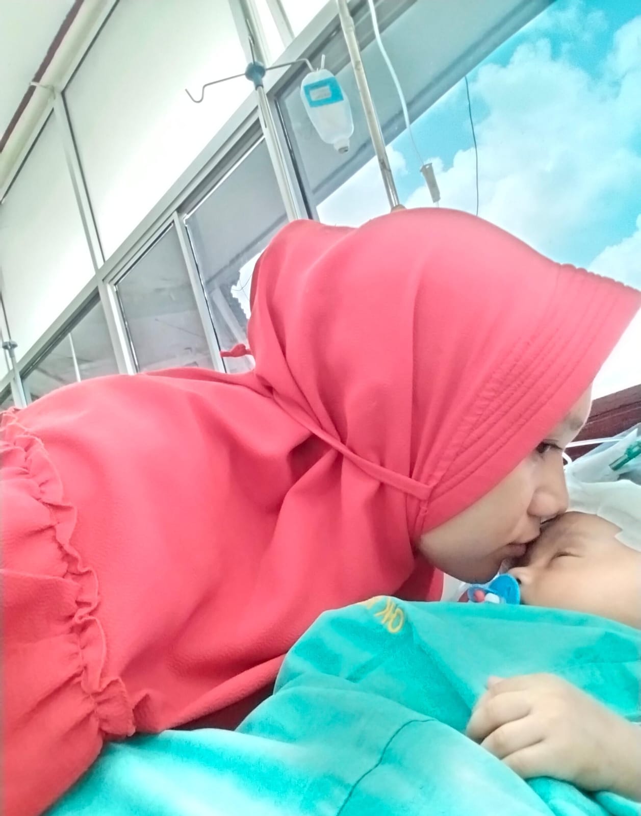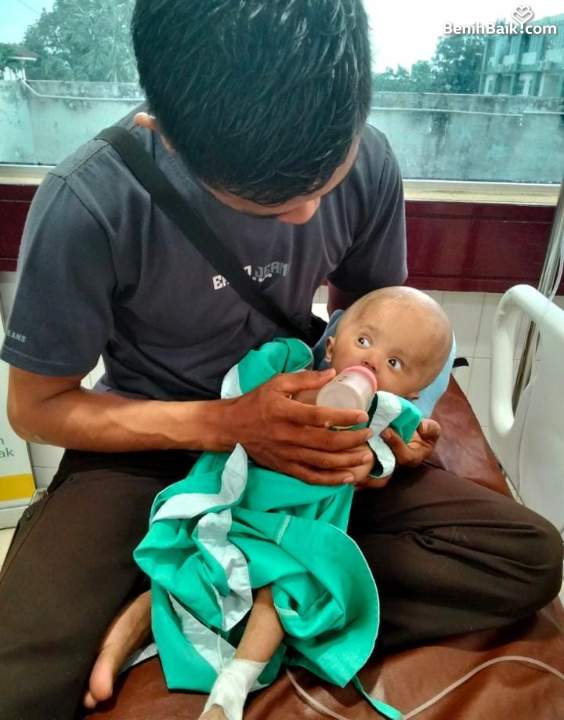 Tumbuh kembangnya terhambat, Ia hanya bisa berbaring tak berdaya, dan belum bisa bicara, bahkan memanggilku ‘ayah.’ Anakku masih harus rutin bolak-balik rumah sakit untuk memantau kondisinya, tapi aku kesulitan biaya.