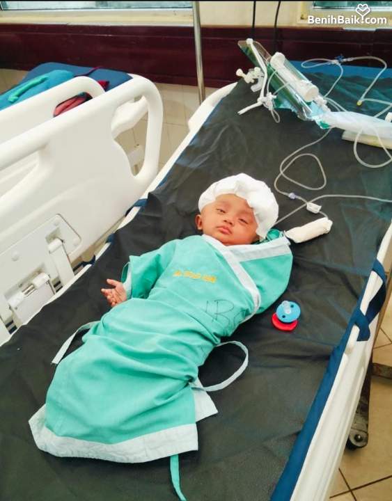 “Di usianya yang baru 8 hari, anakku harus menjalani operasi kepala demi menyelamatkan hidupnya. Penumpukan cairan di otak membuat ukuran kepalanya sangat besar, hingga 50 cm. Aku langsung merinding dan menangis, membayangkan Ia harus menghadapi dinginnya pisau bedah dan jahitan di kepala.” -Saka Riono, Orang tua Ayla-