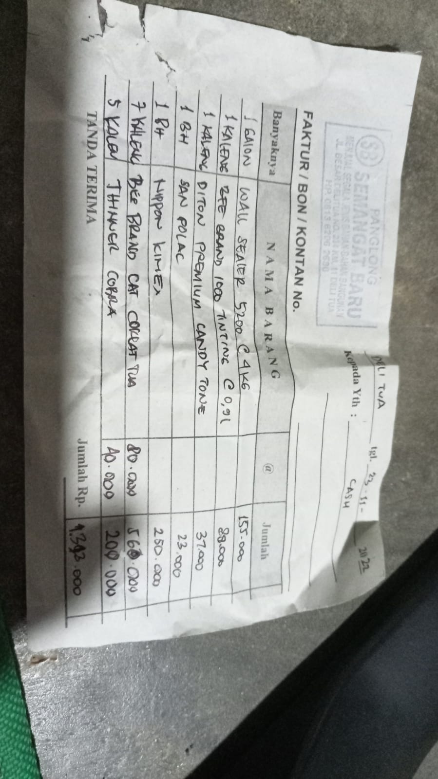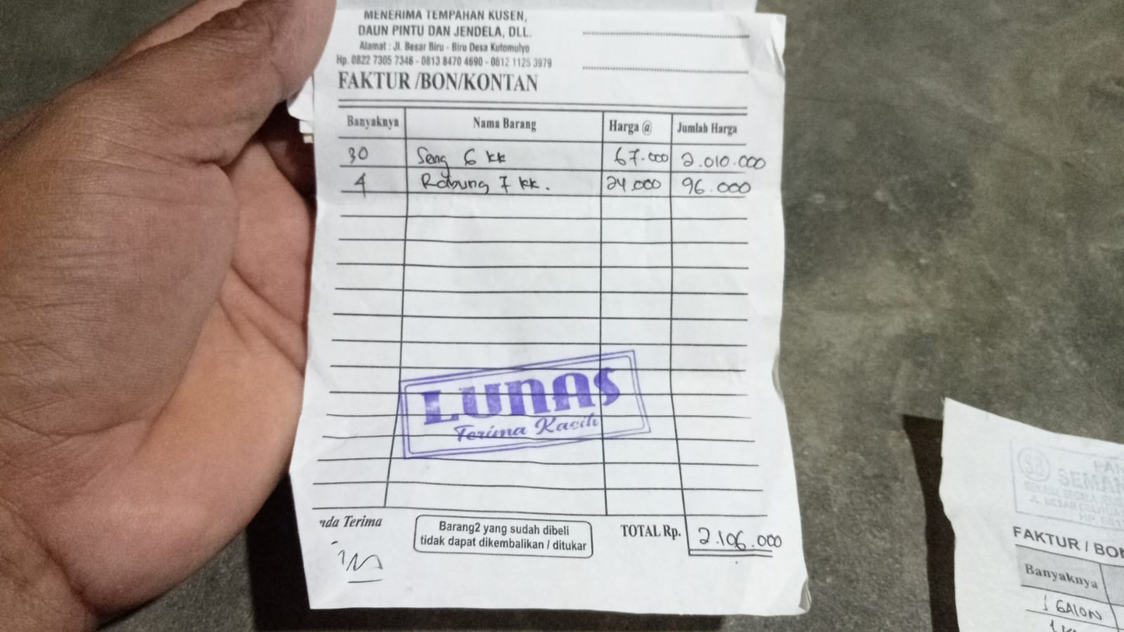 Dana dari TemanBaik sudah berkontribusi banyak dan digunakan dengan baik untuk pembelian semen, seng 6 kaki, batu bata, pasir, kloset, pintu, upah tukang dan biaya lain-lain.