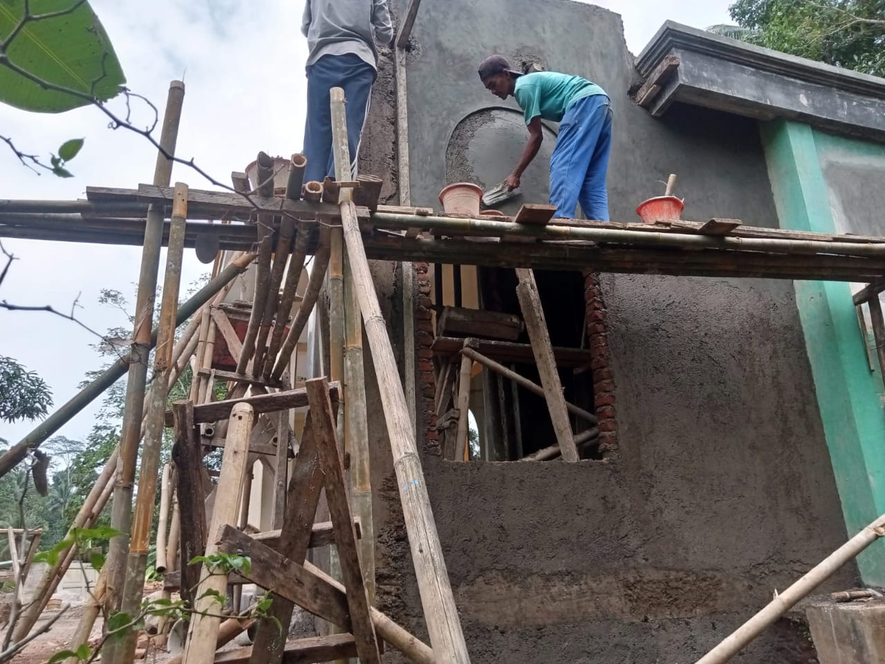 Kondisi bangunan terkini baru 60%, namun anggaran pembangunan sudah habis. Tunggakan ke material dan para buruh pekerja sudah mencapai 20 juta.