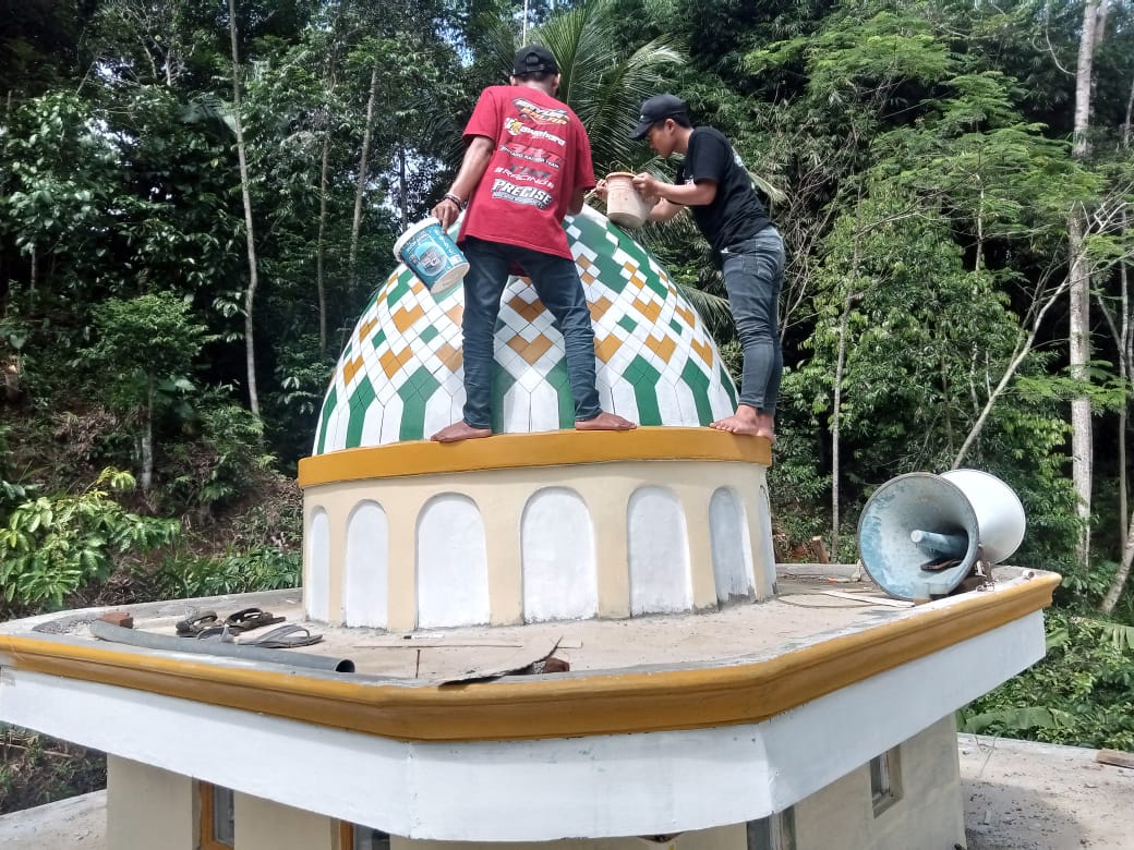 Alhamdulilah saat ini untuk bangunan sudah hampir selesai, hanya fokus ke pengadaan air bersih, karpet dan ada sedikit bagian halaman yang belum selesai.
