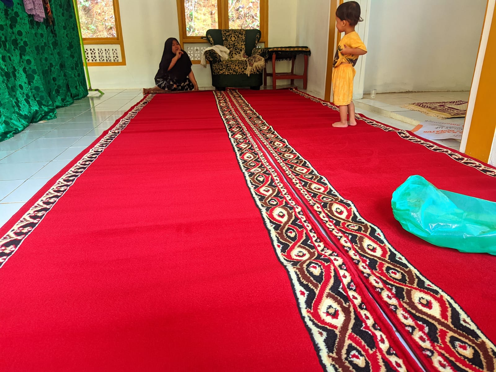 Sebenarnya sesuai kebutuhan seharusnya 8 rol karpet, namun, karena minimnya anggaran jadi kami belikan 3 rol karpet dulu.