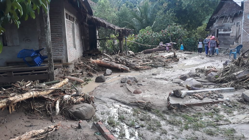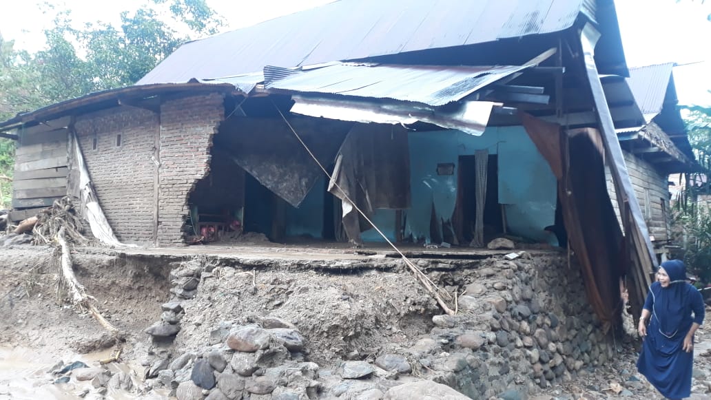 Sementara itu, akibat banjir bandang dan tanah longsor membuat puluhan rumah hanyut dan roboh. Banyak fasilitas umum yang rusak parah seperti tiang listrik, kantor desa dan sekolahan.