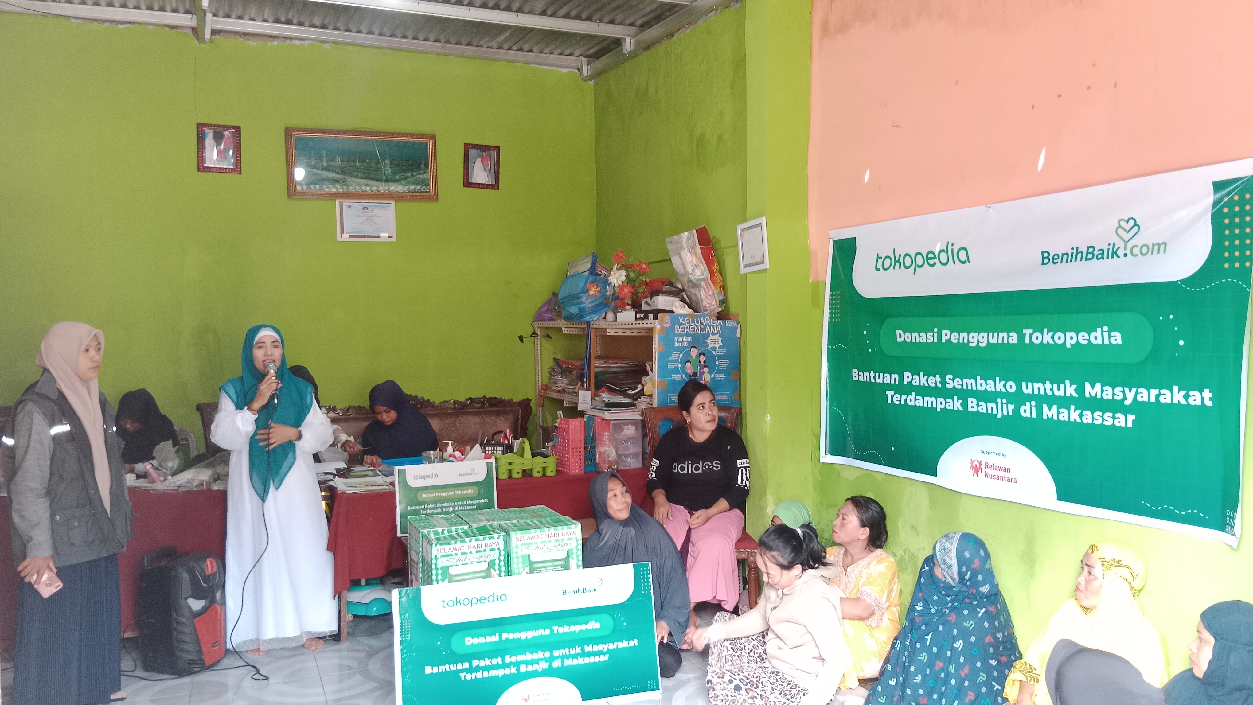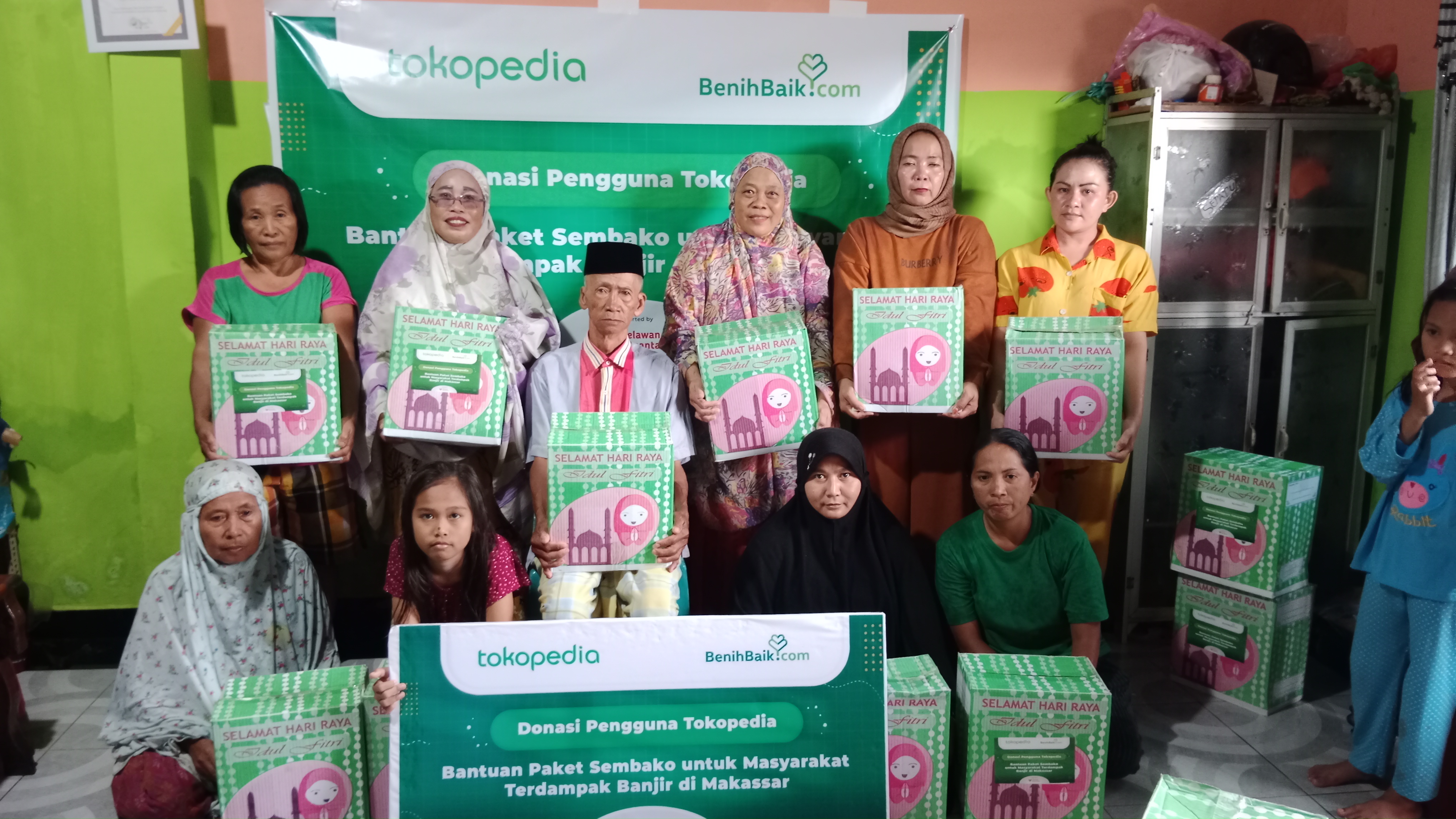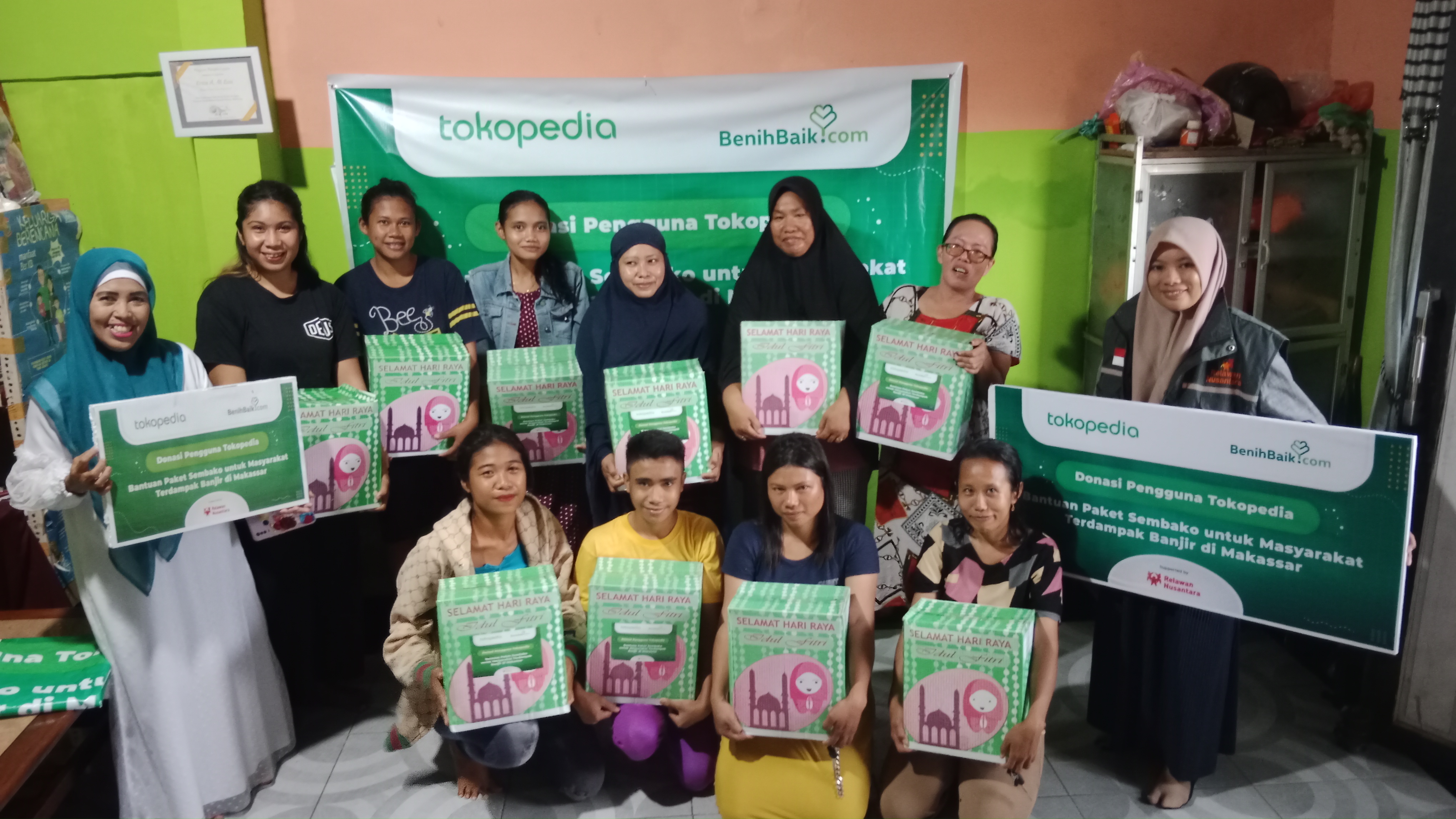 Dana dari Pengguna Tokopedia yang digunakan untuk pembelian 435 paket sembako untuk masyarakat terdampak banjir di Makassar