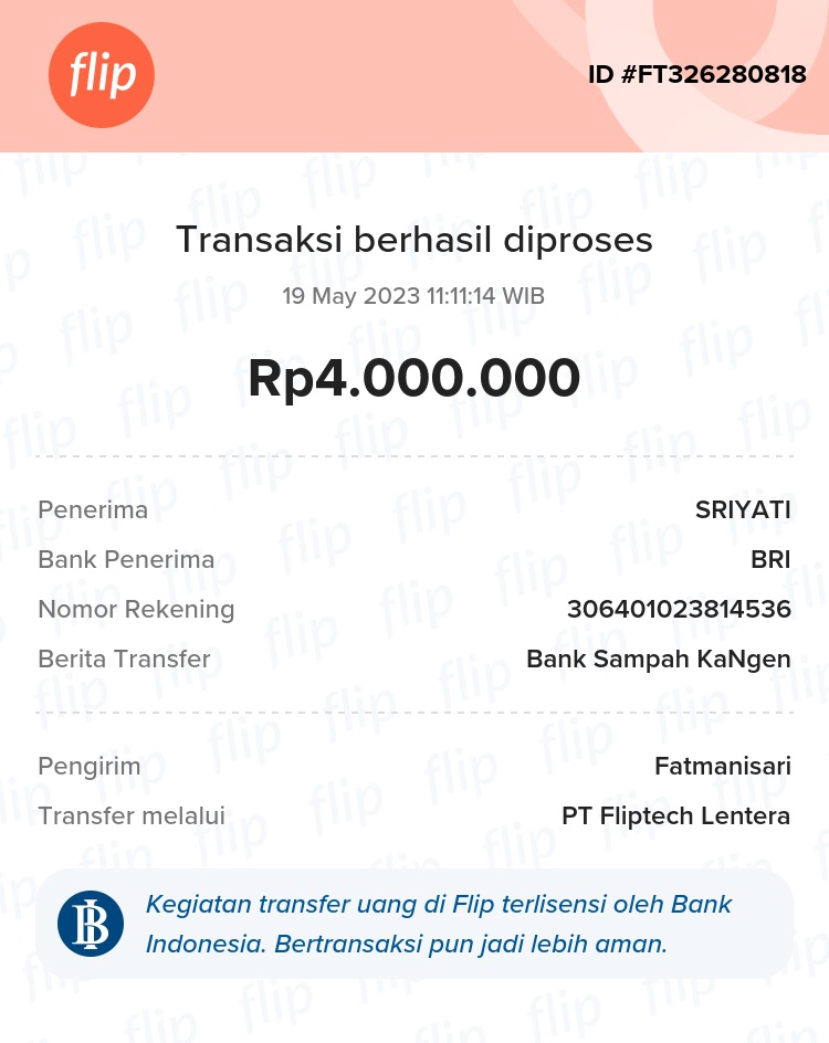 Ke rekening ****131 a/n BANK SAMPAH KANGEN