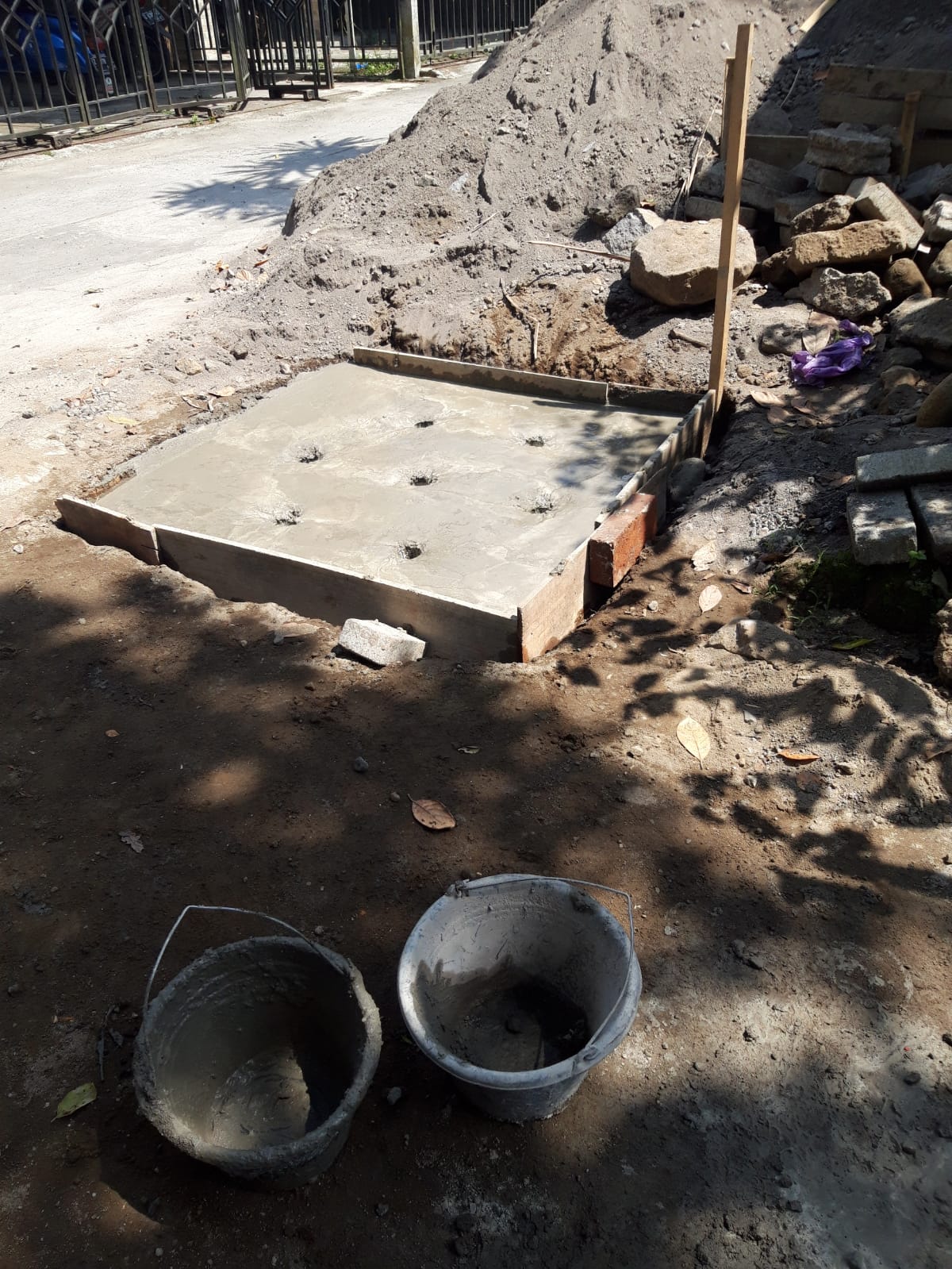 Selanjutnya agenda menyemen lantai ditunda dikarenakan ada jadwal menebang pohon. Bersamaan dengan acara menebang pohon, dilakukan pembuatan resapan pertama di sisi selatan barat BS KaNgen.