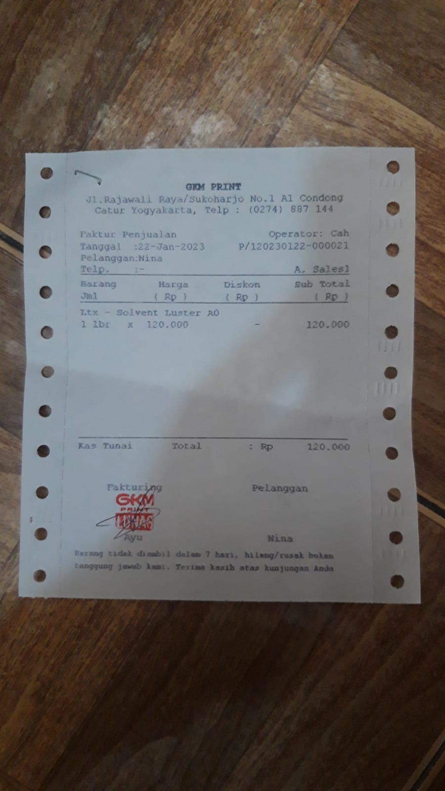 Dana digunakan untuk 1. Lampu 13 watt Rp54.000 2. Fitting kabel lampu gantung 7 meter Rp100.000 3. Papan susunan pengurus Rp80.000 4. Rak pajangan karya Bank Sampah Rp416.650.2022-12-28 15:50:10