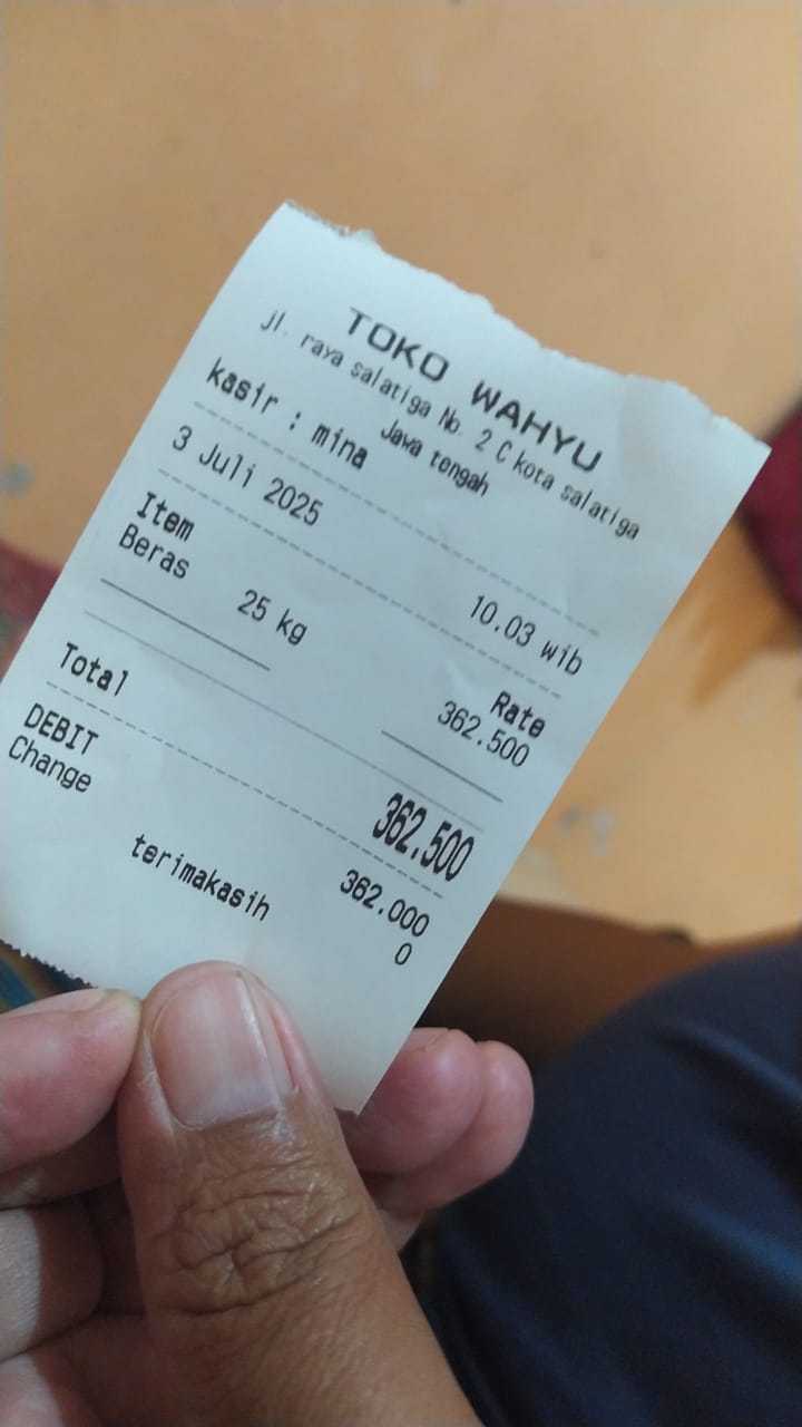 Dana digunakan untuk Beras Rp15.000 x 25kg = Rp375.0002025-05-26 15:47:09
