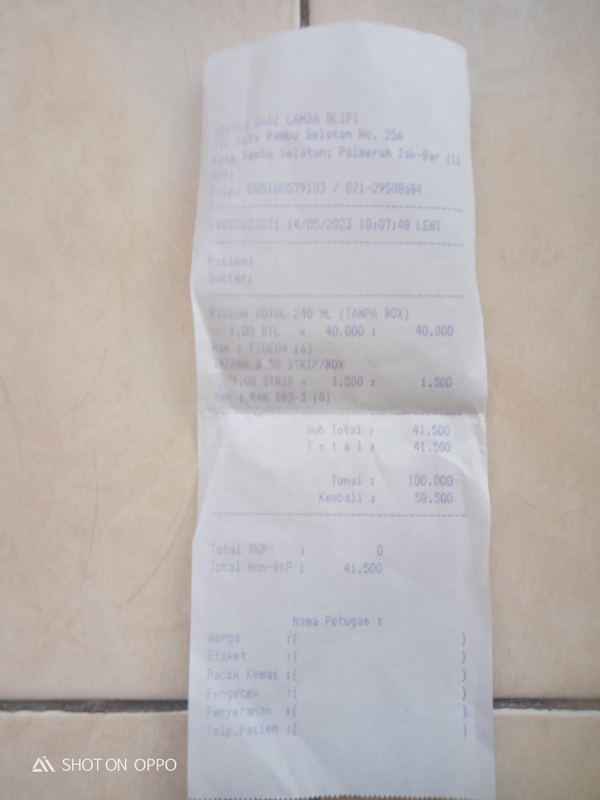 Dana digunakan untuk 1. Biaya pengganrian layanan klinik endokrinologi anak Rp275.000 2. Susu Dancow 3+ 1000 gr Rp125.000 3. Pampers Sweety 50.000.2023-05-04 15:33:20