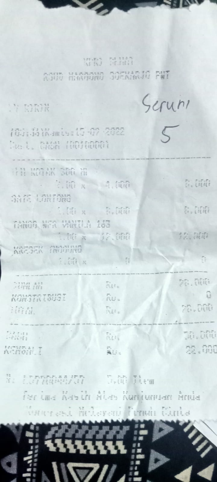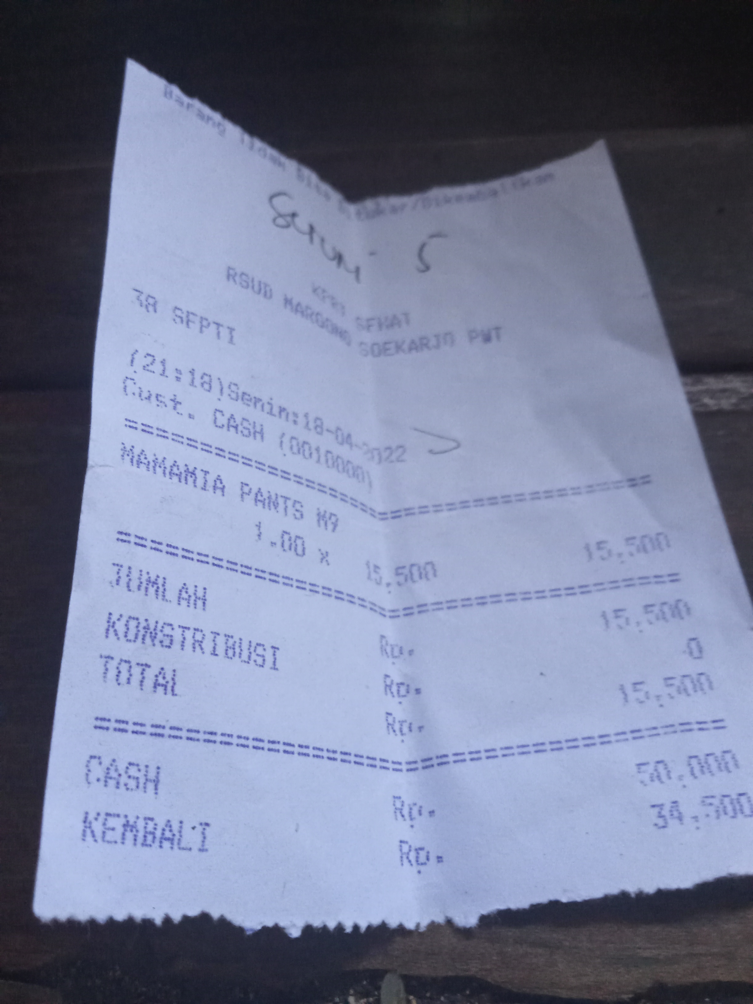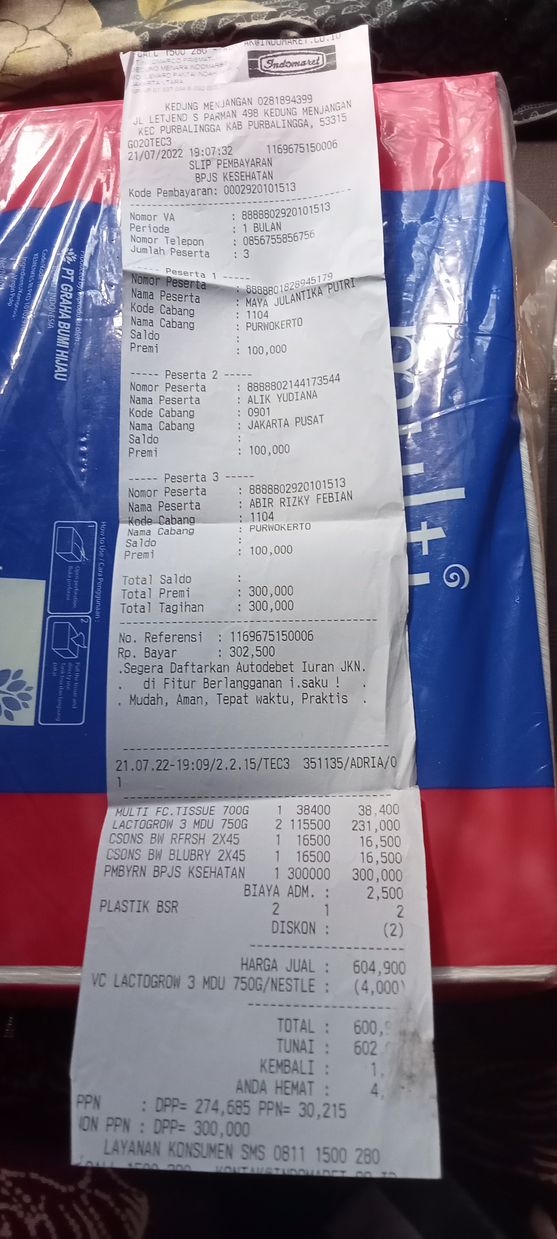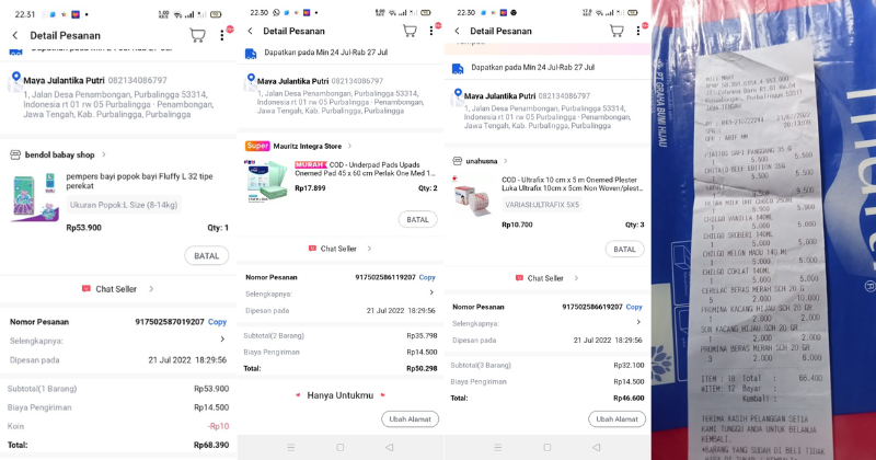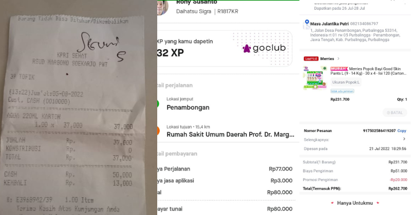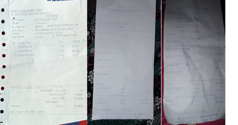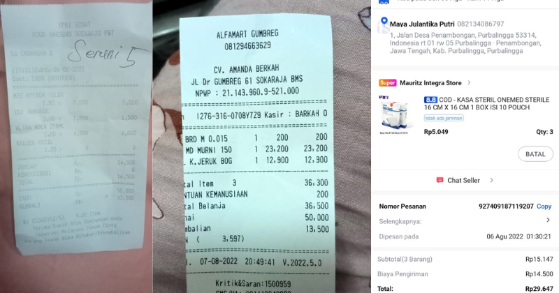 Underpad persiapan OP penutupan kolostomi 19×8 = 152.000 Popok sekali pakai model perekat persiapan OP penutupan kolostomi 170.000 Susu lactogrow 1Kg 136×6 =816.000 Plastik dan dobletape 80.000 Bpjs 300.000 NACL 11.000×10 = 110.000 Ultrafik 25.000×4 = 100.000 Tisu nice isi 900, 50.000 Popok sekali pakai L 44 pcs ,isi 4 model celana 328.000 Tisu basah 20.000×5 = 100.000 Operasional RS = 300.0002022-07-21 18:19:45