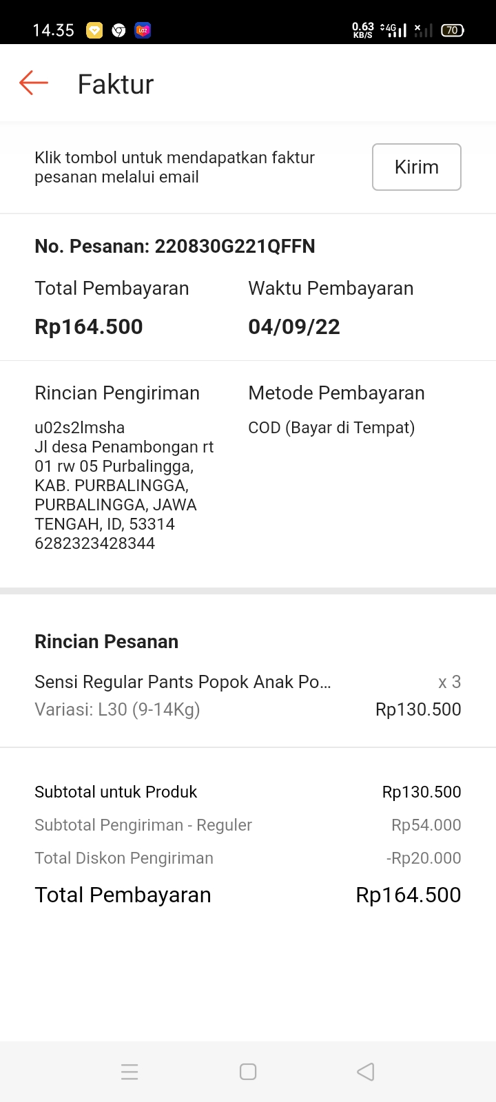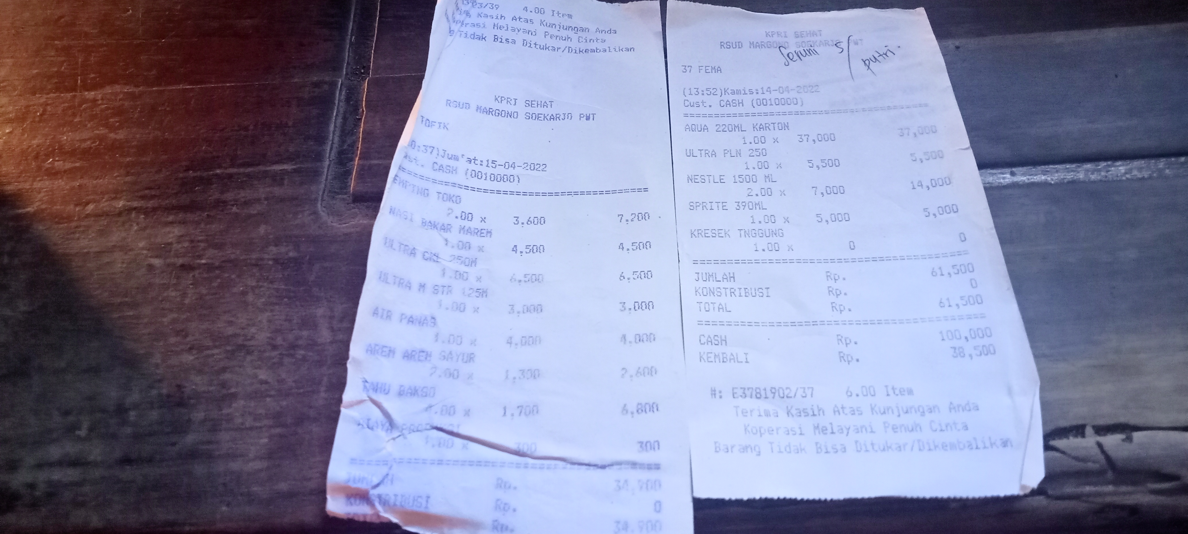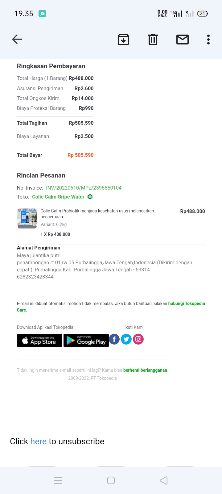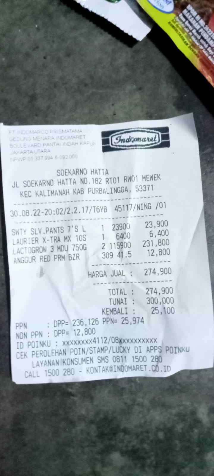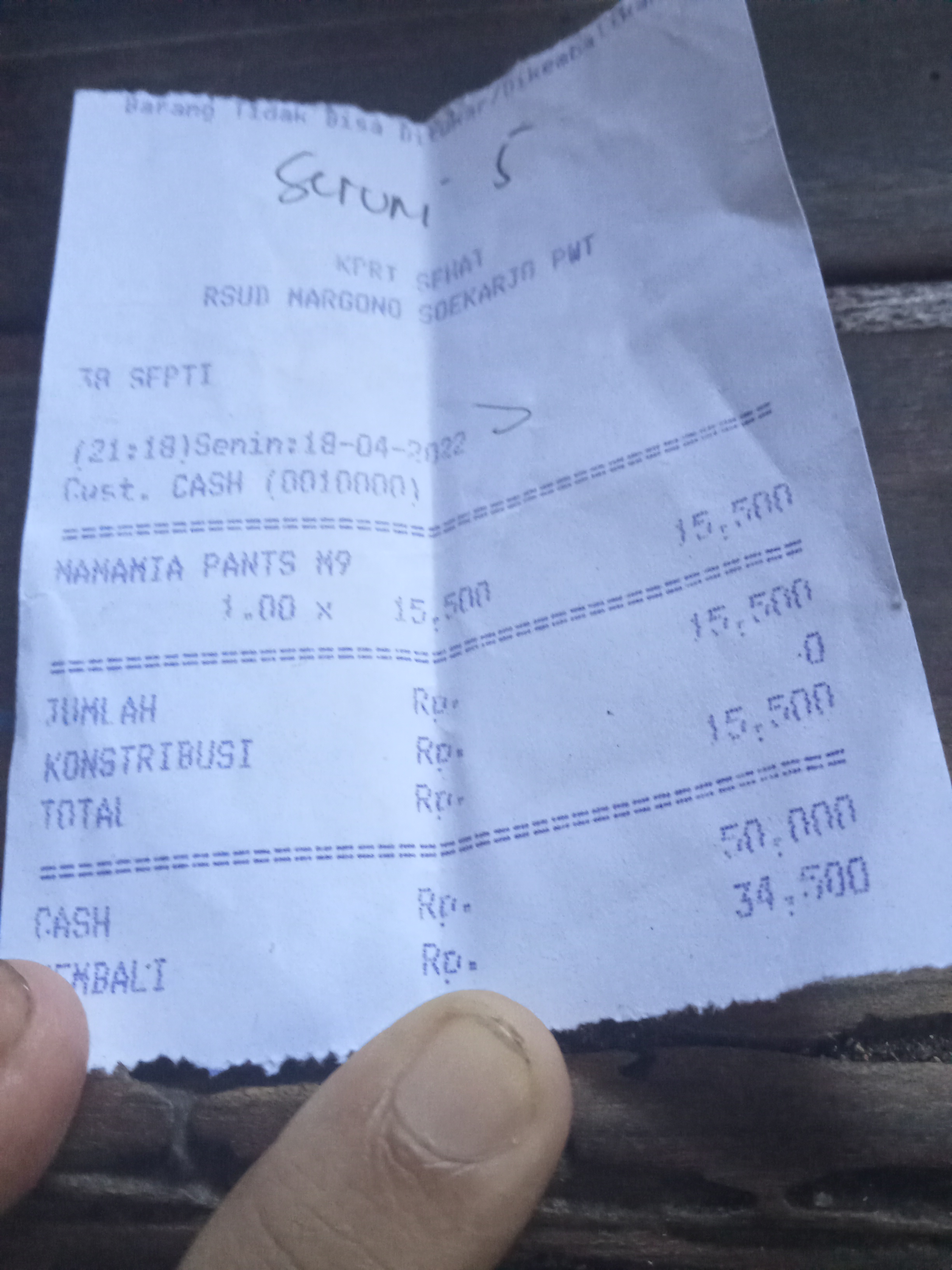 Underpad persiapan OP penutupan kolostomi 19×8 = 152.000 Popok sekali pakai model perekat persiapan OP penutupan kolostomi 170.000 Susu lactogrow 1Kg 136×6 =816.000 Plastik dan dobletape 80.000 Bpjs 300.000 NACL 11.000×10 = 110.000 Ultrafik 25.000×4 = 100.000 Tisu nice isi 900, 50.000 Popok sekali pakai L 44 pcs ,isi 4 model celana 328.000 Tisu basah 20.000×5 = 100.000 Operasional RS = 300.0002022-07-21 18:19:45