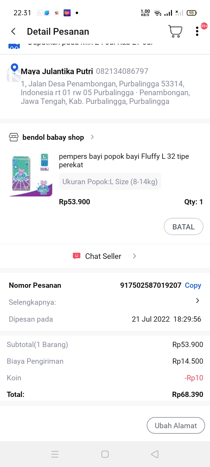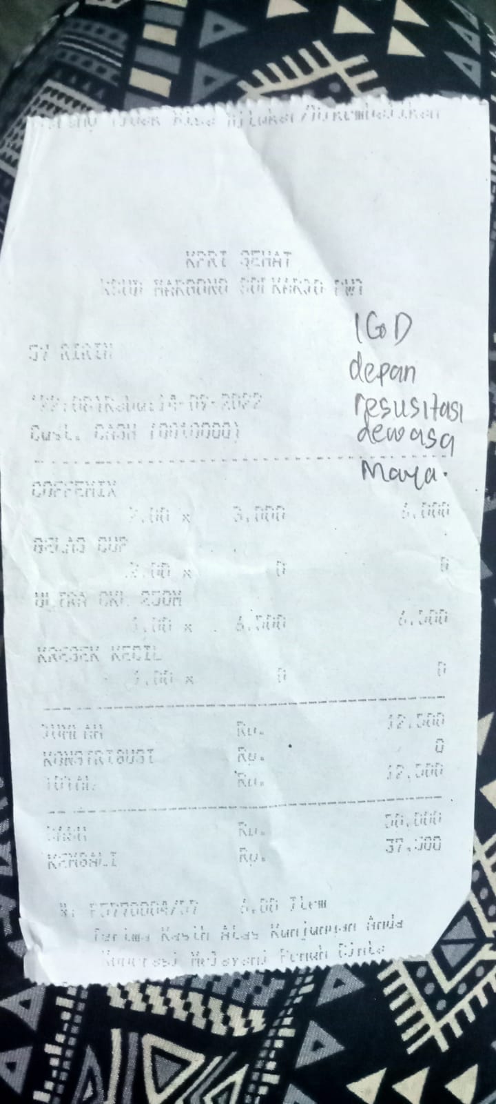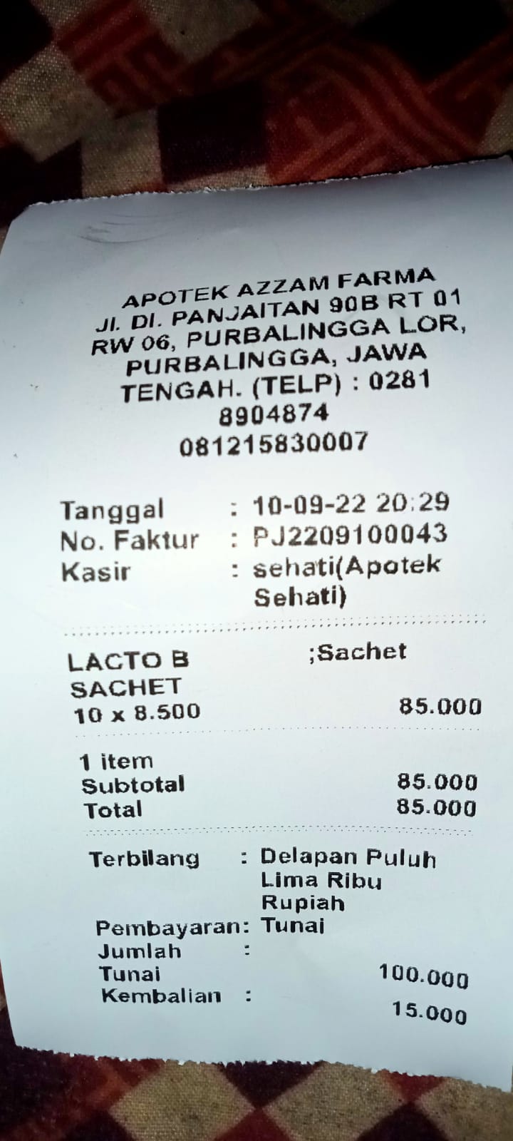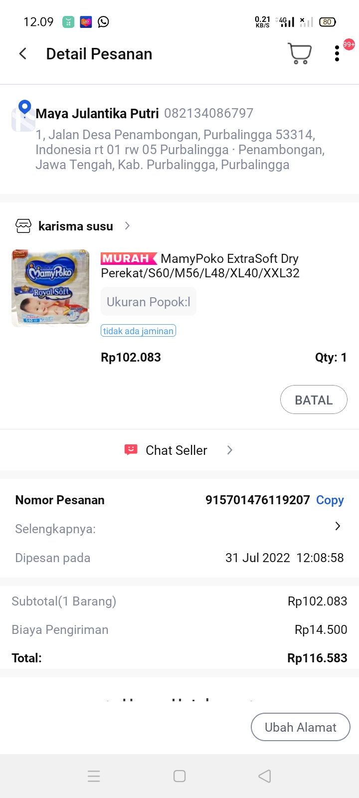 Underpad persiapan OP penutupan kolostomi 19×8 = 152.000 Popok sekali pakai model perekat persiapan OP penutupan kolostomi 170.000 Susu lactogrow 1Kg 136×6 =816.000 Plastik dan dobletape 80.000 Bpjs 300.000 NACL 11.000×10 = 110.000 Ultrafik 25.000×4 = 100.000 Tisu nice isi 900, 50.000 Popok sekali pakai L 44 pcs ,isi 4 model celana 328.000 Tisu basah 20.000×5 = 100.000 Operasional RS = 300.0002022-07-21 18:19:45