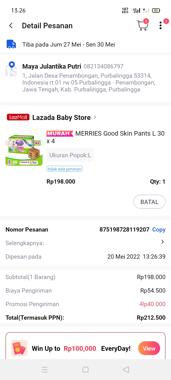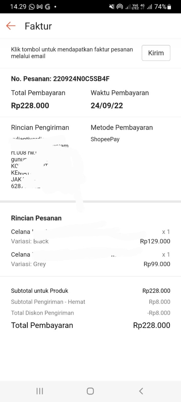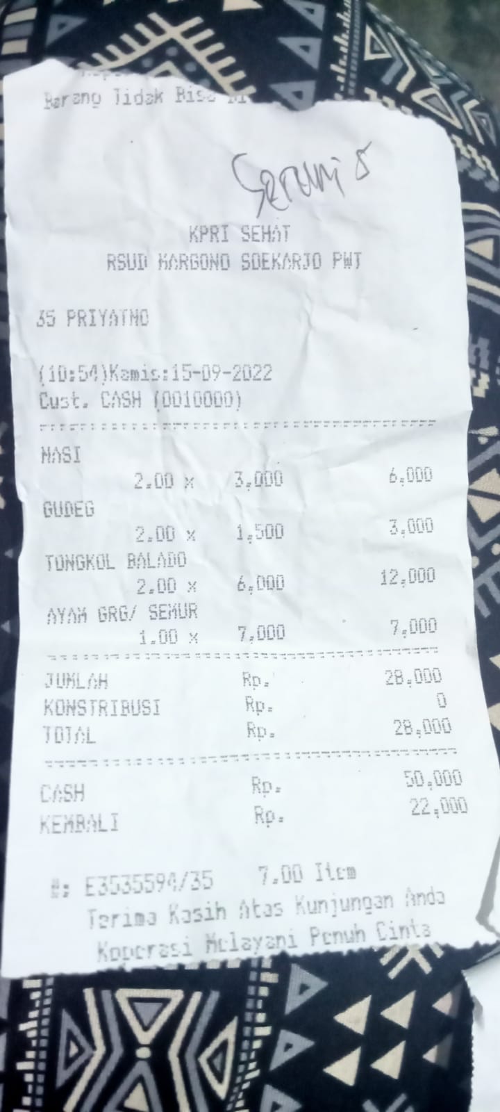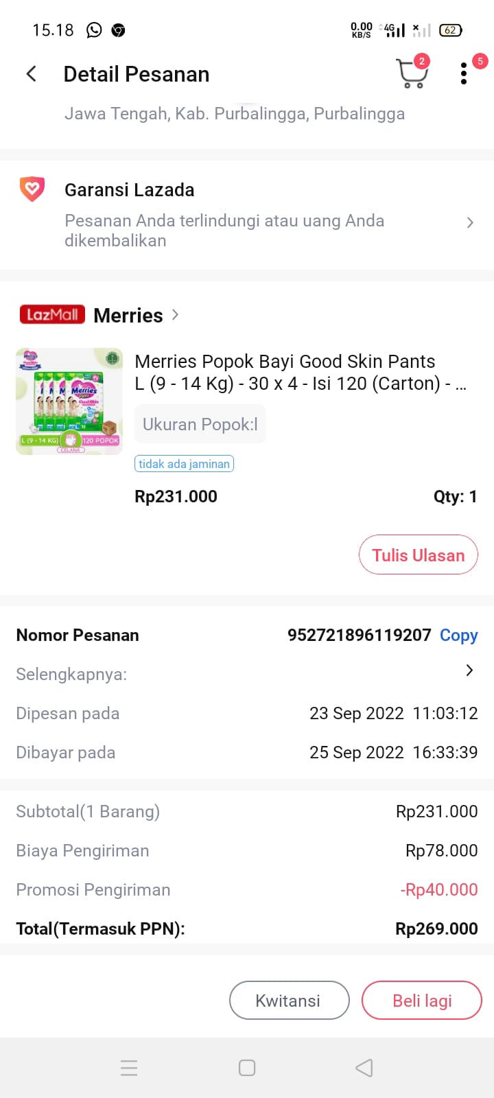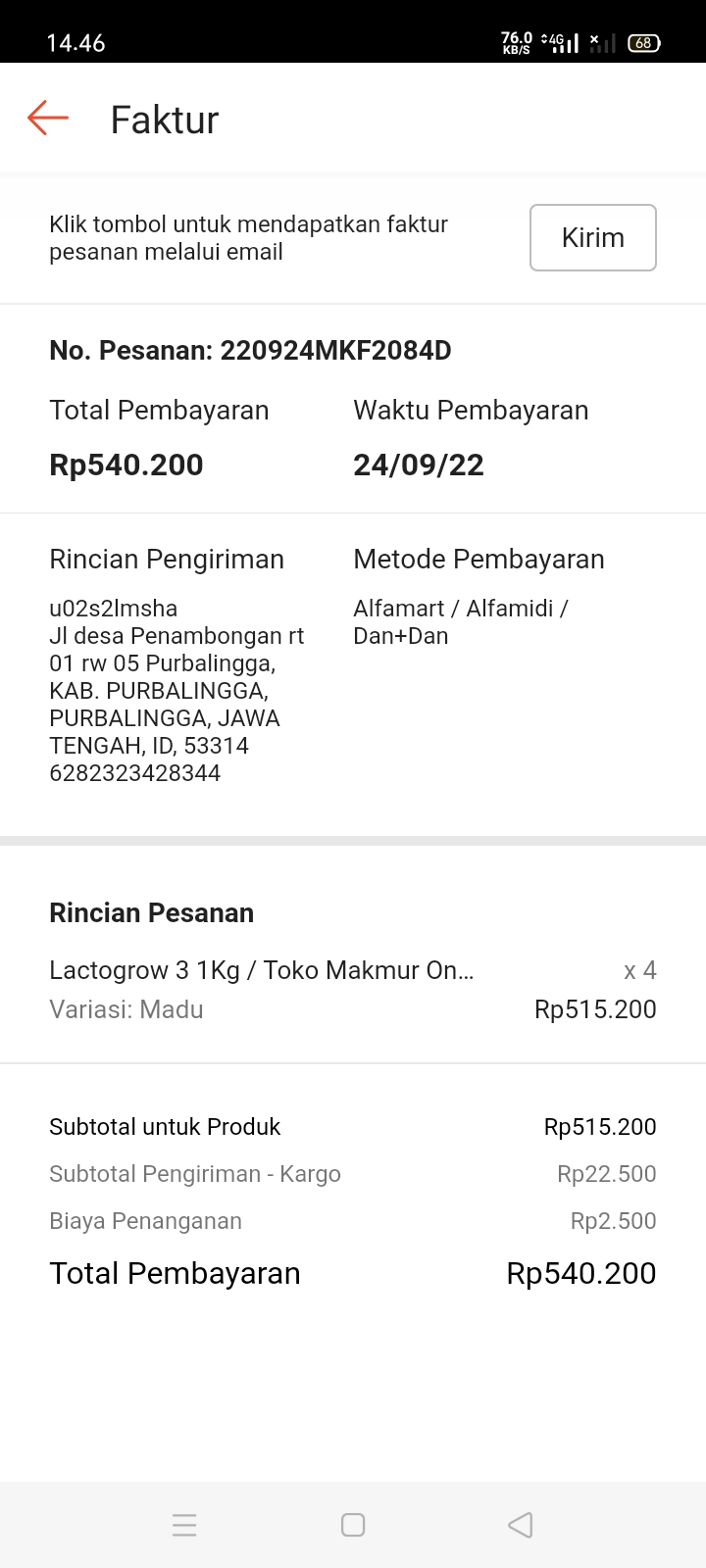 Underpad persiapan OP penutupan kolostomi 19×8 = 152.000 Popok sekali pakai model perekat persiapan OP penutupan kolostomi 170.000 Susu lactogrow 1Kg 136×6 =816.000 Plastik dan dobletape 80.000 Bpjs 300.000 NACL 11.000×10 = 110.000 Ultrafik 25.000×4 = 100.000 Tisu nice isi 900, 50.000 Popok sekali pakai L 44 pcs ,isi 4 model celana 328.000 Tisu basah 20.000×5 = 100.000 Operasional RS = 300.0002022-07-21 18:19:45