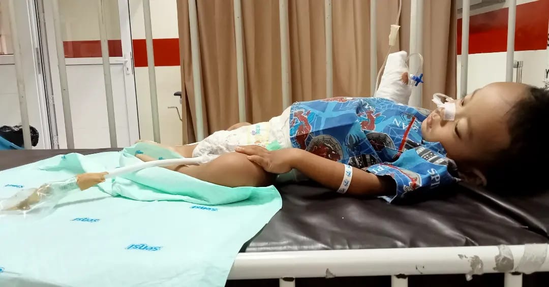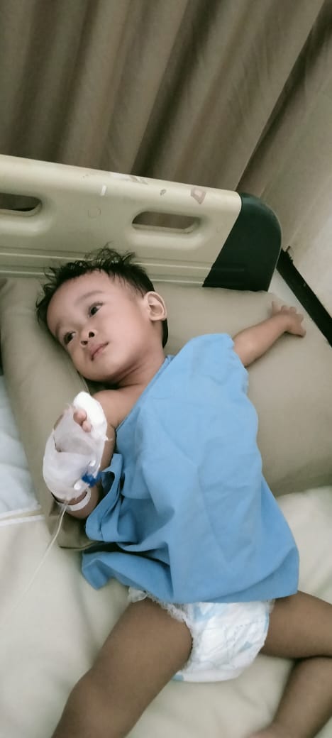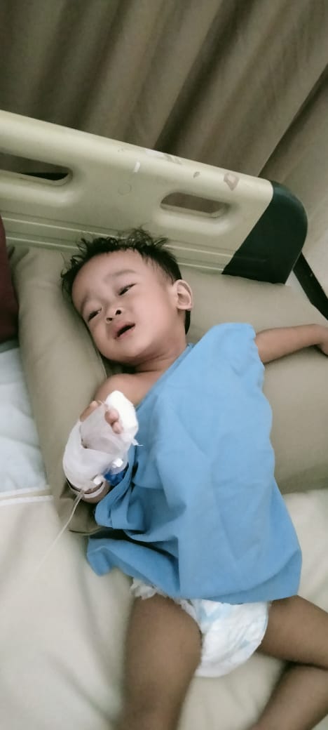 TemanBaik, saya orang tua dari Abir Rizky Febian (2), anak kami sedang menjalani pengobatan karena ada masalah pada ususnya yang mengganggu kesehatannya. Sejak lahir Abir dipaksa untuk akrab dengan kasur rumah sakit karena gangguan pada ususnya, ia sempat dirawat selama 13 hari lamanya karena masalah tersebut. Setelah pemeriksaan dokter bilang kalau Abir didiagnosa dengan kondisi usus tanpa syaraf.