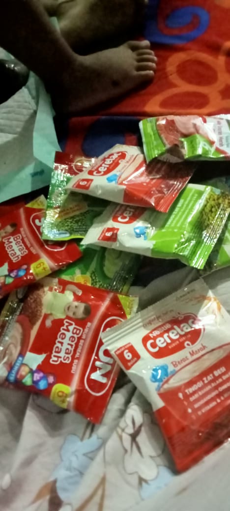 Donasi dari TemanBaik sudah kami gunakan untuk membeli susu, diapers, makanan pendamping dan buah-buahan untuk Abir.