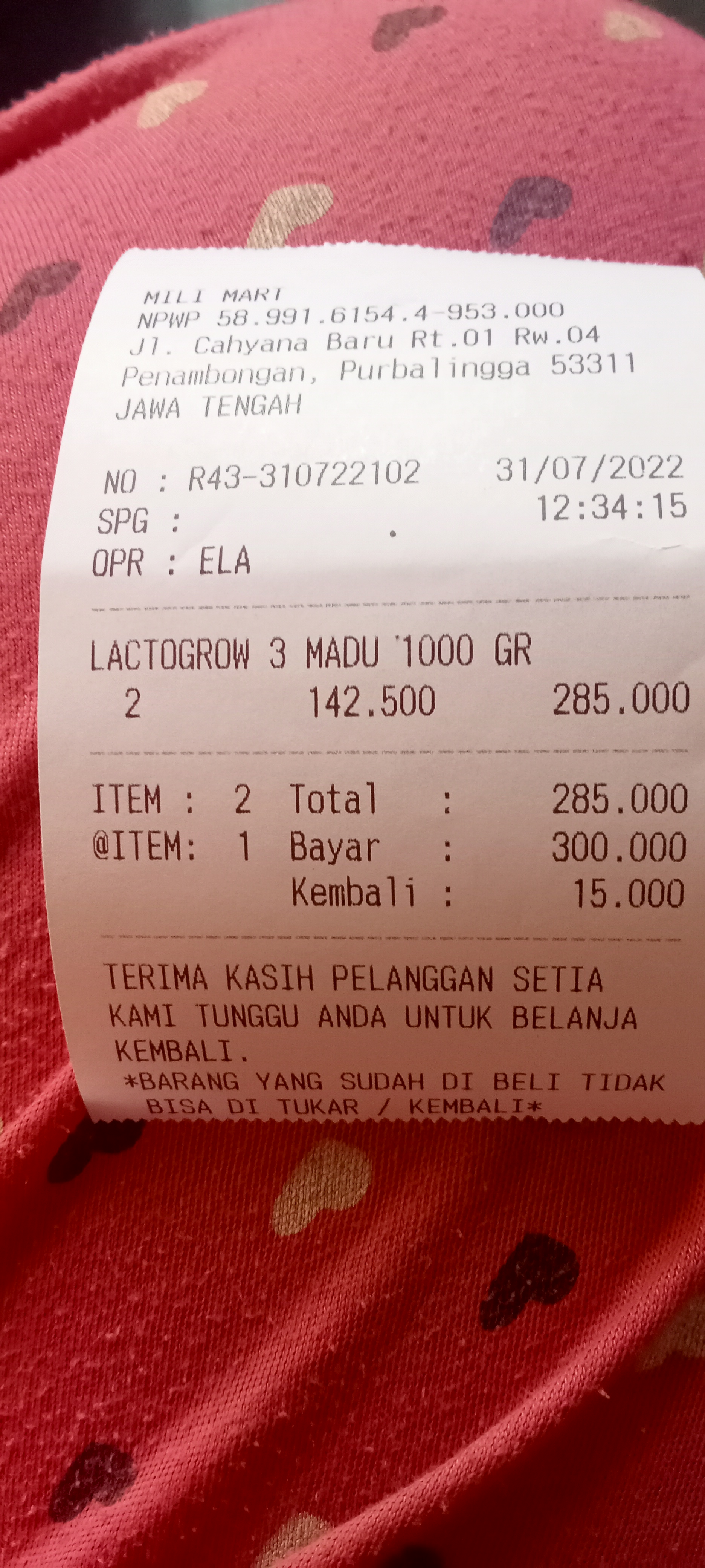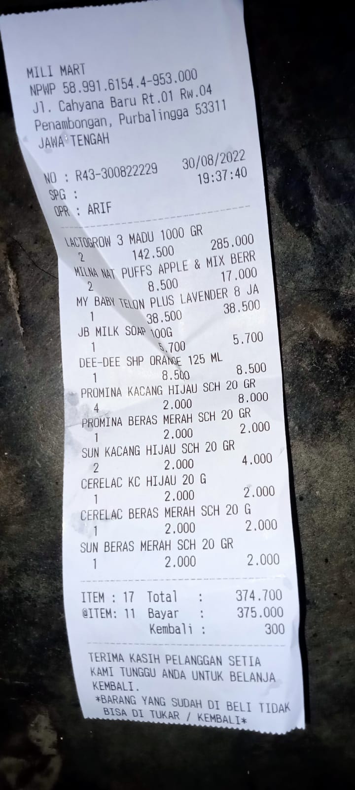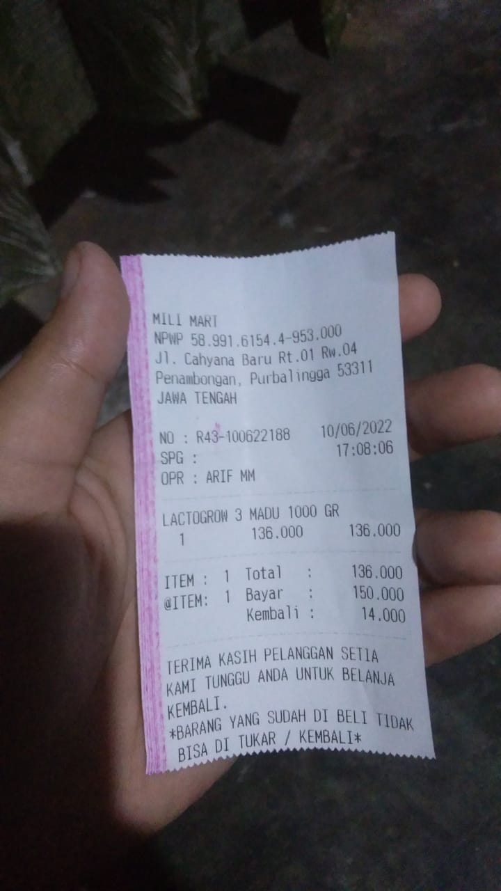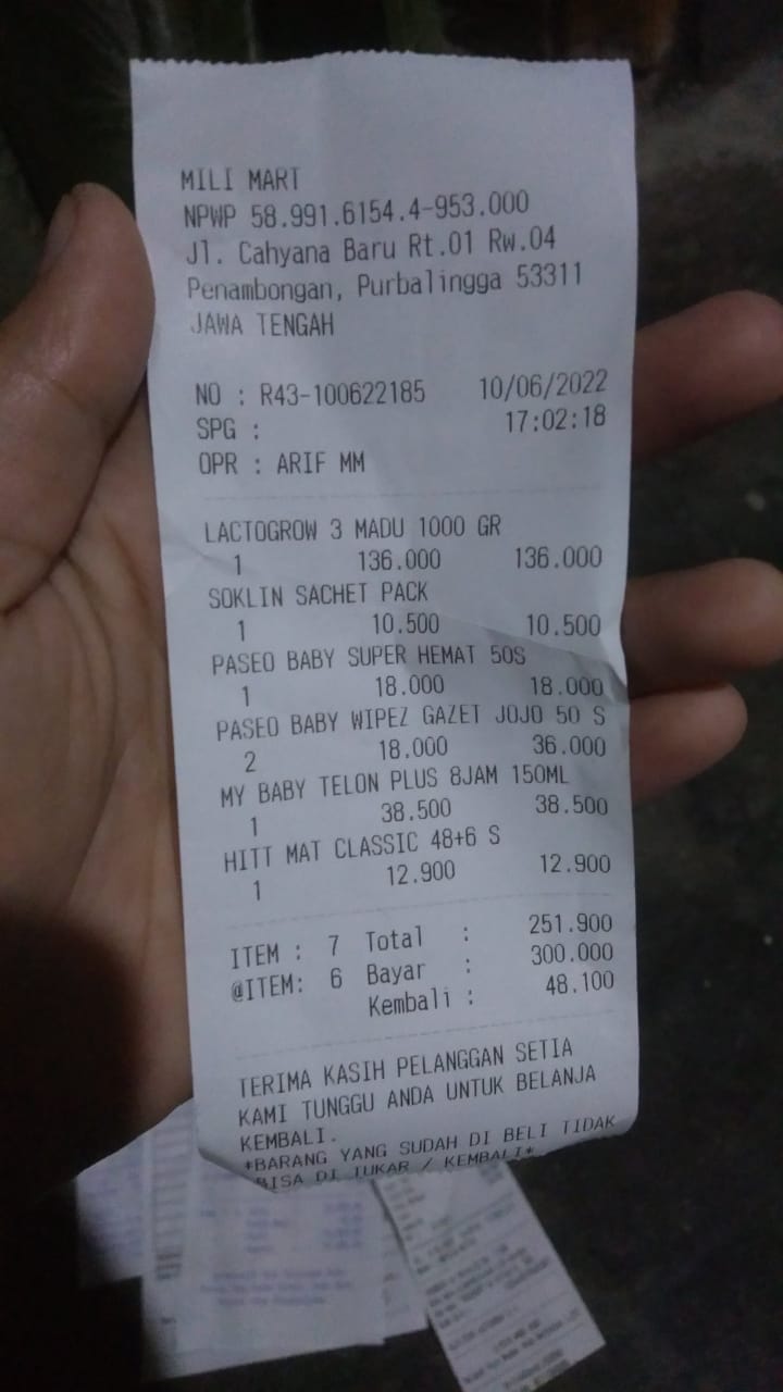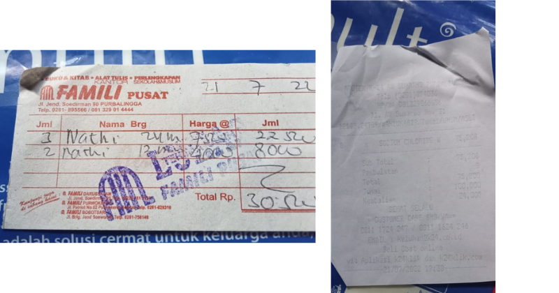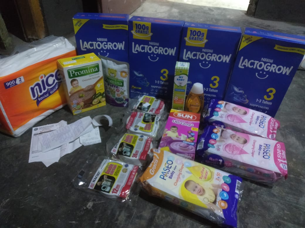 Alhamdulilah kebutuhan seperti NACL, kantong kolostomi, bedak anti iritasi, susu, popok sekali pakai dapat kami beli.