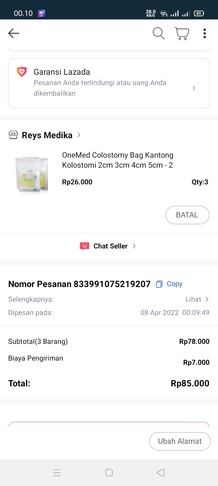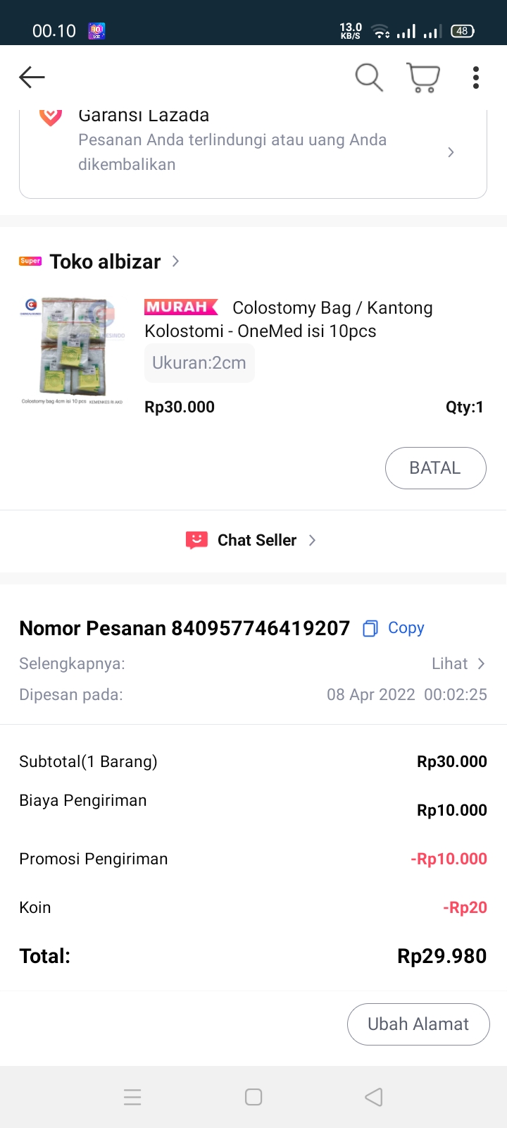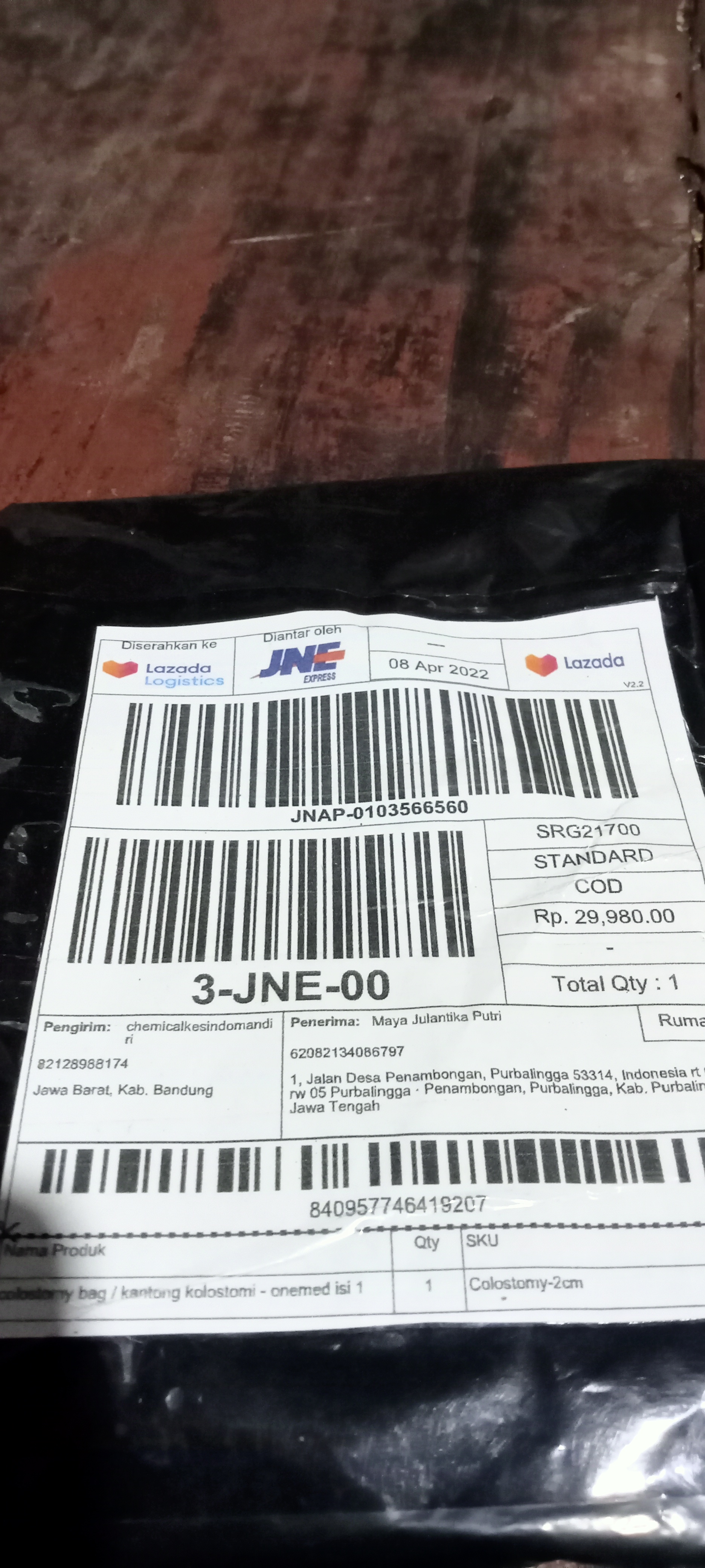 Kantong kolostomi pun yang harganya tidak murah alhamdulilah bisa terbeli.